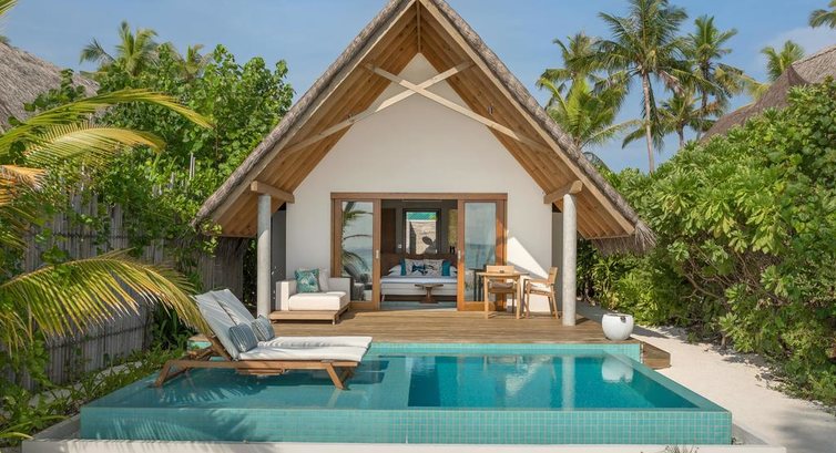 • POOL BEACH VILLA SUNSET площа: 122 кв. Ліжко King size, кушетка, ванна кімната в саду з ванною, критий та відкритий душ, веранда, шезлонги та парасолька. Макс. розм. 2+2/3. Вілла з власним басейном та прямим доступом на пляж