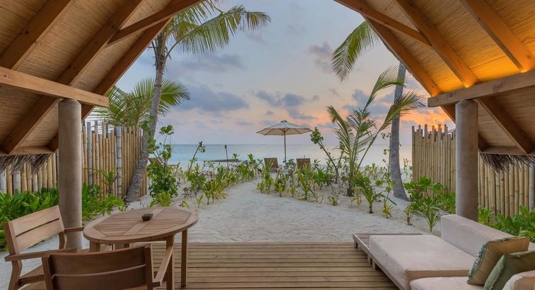 • BEACH VILLA SUNRISE площа: 95 кв. Ліжко King size, кушетка, критий та відкритий душ, веранда, шезлонги та парасолька. Макс. розм. 2+2/3