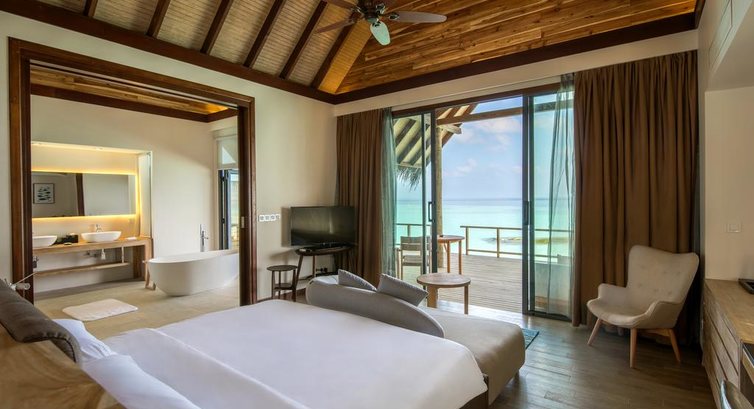 • WATER VILLA площа: 95 кв. Ліжко King size, кушетка, веранда з джакузі, шезлонги та парасольки. Макс. розм. 2+2/3