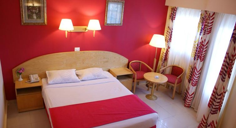 Номер. Согласна с мнениями предыдущих отдыхающих об "уставшей мебели" и далеко не новой сантехнике. Но, матрацы в этих кроватях прекрасные! Чего, к сожалению, не скажешь о дет. кроватке (там он видавший виды). Но может это мне не повезло, кто знает. А дальше шок: душ ввинчен в стену, не имеет шланга. Как мыть ребенка? Ведь вода под напором будет литься ему прямо на голову. Мучиться с ковшиками и ведерками на отдыхе ну совсем не хотелось, ведь малыша приходилось порой ополаскивать по несколько раз за день. Вечером, на встрече с гидом, рассказала об этой проблеме и попросила еще чайник в номер. Так вот, через час чайник был у нас номере, а душ "удлинен до нужных размеров" на следующее утро. Искреннее спасибо гиду за хорошее отношение, хотя он прекрасно понимал, что экскурсии мы у него покупать не будем (с малышом не до них).Минус номера: очень хорошая слышимость между коридором и номером, дверь староватая и открывается ключом, а не карточкой. Также к минусам можно отнести и отсутствие питьевой воды в номерах, но ее вы можете купить в магазинчике через дорогу. Стоимость такая же как у нас. Я тоже сначала купила, а потом просто приходила в ресторан или любой бар и просила набрать мне воды в мал. бутылку 0.5 л для ребенка. Отказа не было никогда.