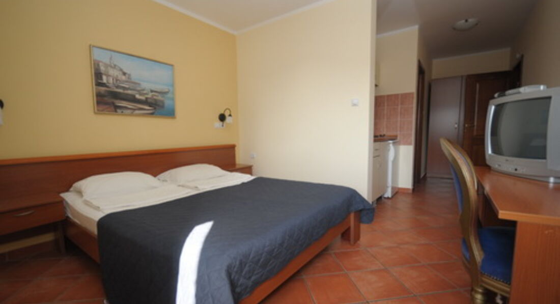 4-місний апартамент (35 кв.м) — двомісна спальня та вітальня з двоспальним ліжком та кухонним куточком, де є все необхідне для приготування їжі