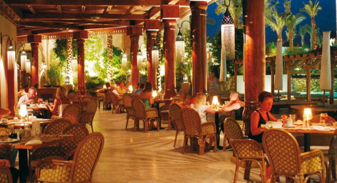 Ужины были и в основном ресторане, и можно было ходить в рестораны А la Carte. В основном ресторане на ужин был не шведский стол, а гарнир, мясное, выдавали повара. Выбор, по сравнению с другими отелями Египта. был очень небольшой. Может это сказался кризис. На Гала ужинах было очень торжественно, более разнообразный выбор блюд. Практически все время в ресторанах обслуживают официанты. Вечером напитки разносят только они, в обед тоже садишься, заказываешь, и ждешь. Народу немного, так что приносят все довольно быстро..