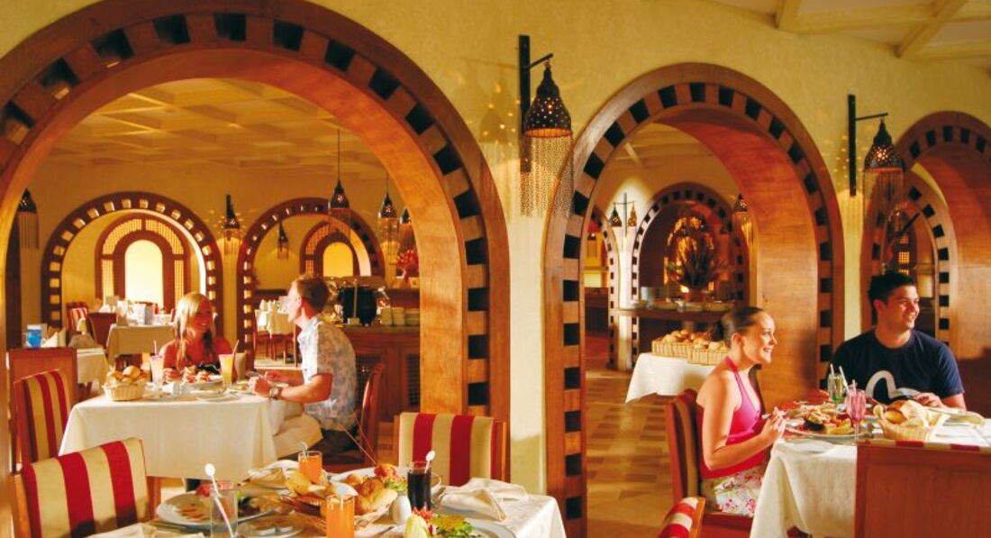 Система "все включено" діє з 10:00-00:00, включено: - місцеві напої, подаються в склянках; знижка 15% на їжу та напої в барі Ghazala Beach Bar (бар готелю Ghazala Beach, розташований на пляжі); сніданок у ресторанах Fountain Restaurant та Olive Garden Restaurant, обід у ресторанах Fountain Restaurant, Olive Garden Restaurant, The Island Grill and Bar, вечеря у ресторанах Fountain Restaurant, Olive Garden Restaurant та The Island Grill and Bar, випічка та морозиво у Ghazala Cafe, закуски з 12:00-14:30 у снек-барі, розташованому в готелі Ghazala Beach. Платно: імпортні алкогольні напої, віскі преміум класу, пиво, свіжі соки, лобі бар Marhaba, деякі страви в ресторанах, зазначені в меню. Замовлення ланч-боксу на ресепшн. Вхід до ресторанів у купальних костюмах і без взуття заборонено.
