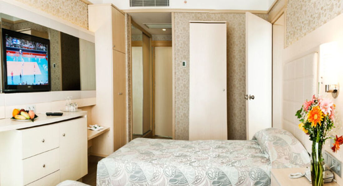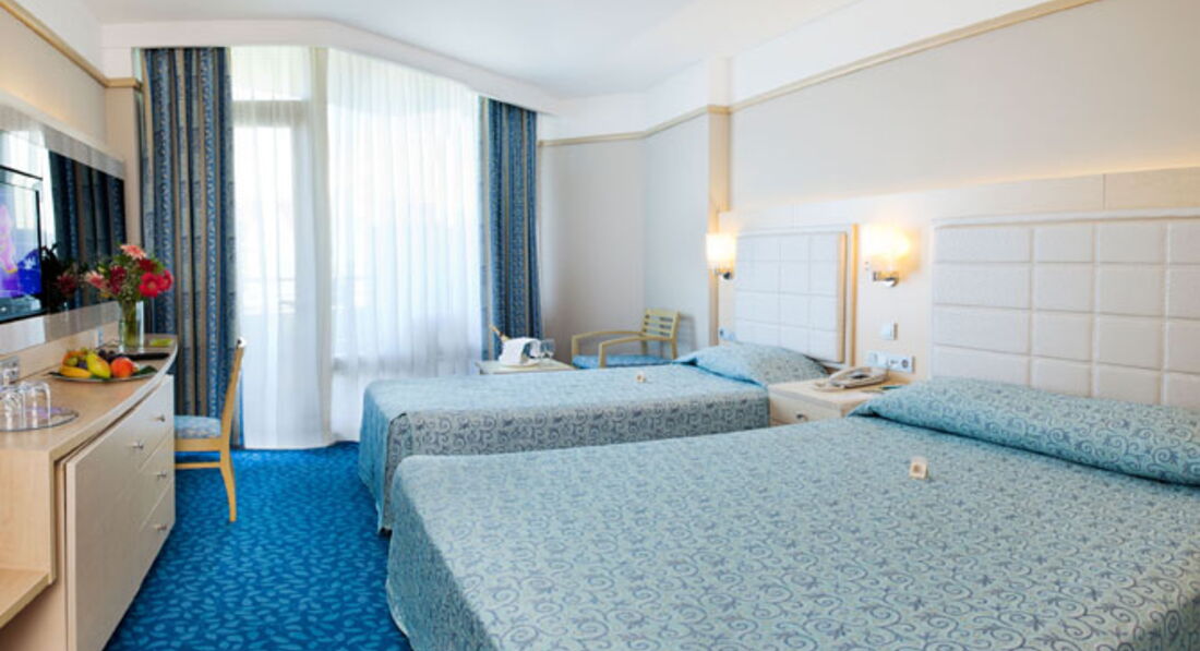 Кровати очень удобные только одеяла очень теплые, я за много лет отдыха в Турции привыкла к легким одеялам простынного типа. Подушек несколько видов на выбор. Чайника в номере нет, стаканы есть. Сейф бесплатный. Халата и тапочек нет. Для маленького ребенка ставят кровать манеж (по запросу).