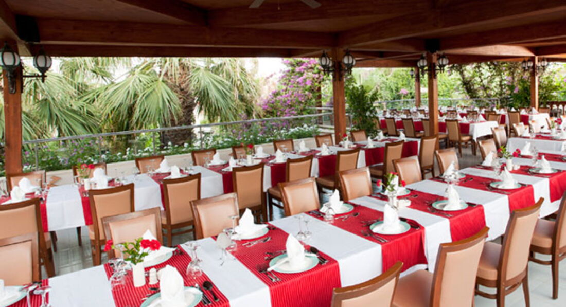 Бари та ресторани: 2 основних ресторани – закрита секція розрахована на 480 осіб, відкрита на 450 осіб 5 меню ресторанів - турецька, італійська, рибна, барбекю та китайська (за додаткову плату за попередньою резервацією). 6 барів.