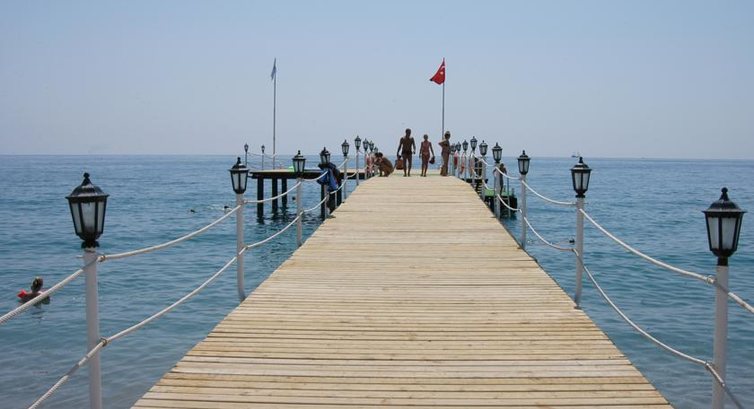 В данный отель попали случайно. Тур-оператор предложил нам этот отель в последний момент, когда выяснилось, что отель, который мы выбрали изначально, поднял цену. Встречающая сторона Одеон Тур. Дорога из аэропорта Газипаша г. Аланья заняла 1,5 часа. Высадили у соседнего отеля, проехав мимо нашего и гид Анжелика проводила нас в отель. Приятное начало отдыха((. Обратно в аэропорт ехали больше 2 часов, собирая одиночных туристов из отелей. Сам аэропорт очень маленький, при вылете учтите ( в Duty Free очень маленький выбор и не маленькие цены. Перекусить негде). В отеле поселили в домик на последней линии у дороги. Номер чистый, мини бар отсутствует. Чайника в номере нет. На столе бутылка воды 1,5л, что конечно очень мало на двоих взрослых. В первый день воду не принесли и не убирались. За водой пришлось идти в ресторан. В ванной комнате принудительная вентиляция не предусмотрена, но есть небольшое окошко. Территория зеленая, ухоженная. Пляж самый большой из всех близлежащих отелей,заходить в воду можно с пирса .С пирса по утрам ловят рыбу, хотя при выходе на пляж стоит плакат запрещающий ловлю. Питание хорошее, мясные блюда готовят вкусно, но фруктов мало(фото). За клубникой (2$ за кг) и дыней (по 2$ за штуку) ходили в сторону Алара Гранд Базар (примерно 15мин.), там с машины продают. Спиртное: пиво и виски не понравились, пили белое вино и коньяк. До г. Аланья можно доехать на автобусе, который проходит мимо территории отеля (2$ с человека, примерно 40 км), время в пути около 1 ч. (кому интересно: автобус проезжает мимо дельфинария), автобус довозит до Базара в г. Алания, там конечная. До Алара Гранд Базар проезд стоит 1$ (примерно 3 остановки или 20 мин. пешком). Из Алании до ТЦ Аланиум можно доехать на автобусах №2, 202. В целом отель понравился, и за те деньги, что были заплачены требовать большего не стоит.