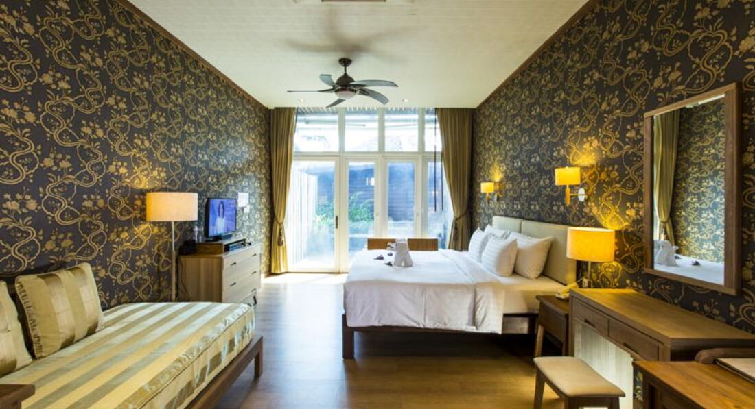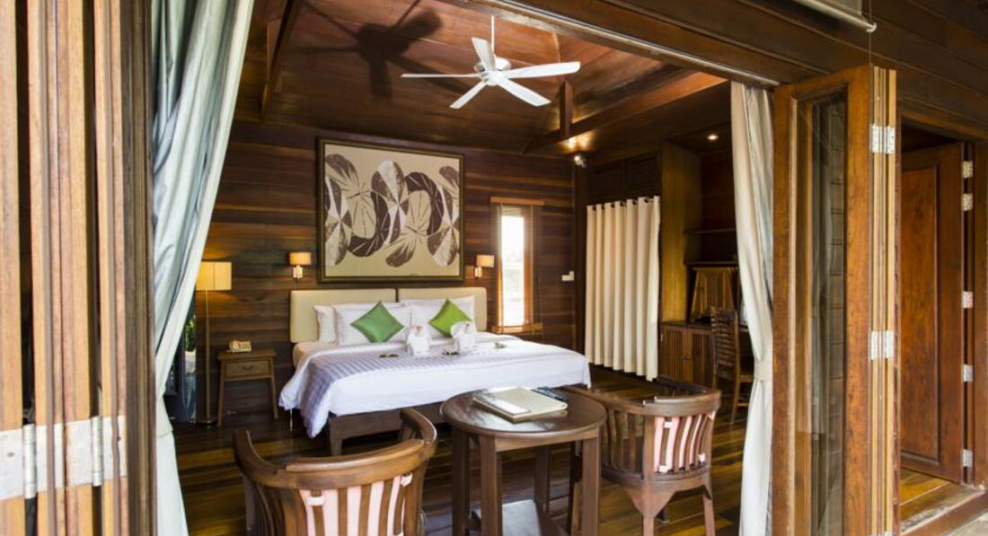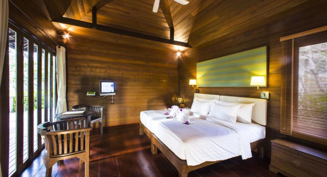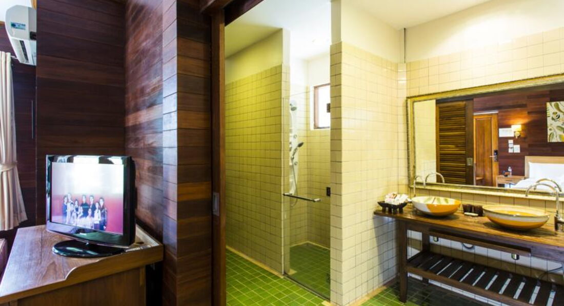 Отдыхали с женой в апреле 2010г. Жили в deluxe бунгало. Отель я выбирал именно по критериям "маленький и тихий". Выбор оказался полностью оправданным. Очень дружелюбный персонал, красивейшая зеленая территория, уютные домики. Deluxe бунгало сразу имеет дополнительную кровать, и даже втроем с ребенком в номере будет далеко не тесно. Кондиционер,сейф. ЖК телевизор с домашним кинотеатром, холодильник (минибар). Напитки в минибаре бесплатны. Также у нас в номере был чайник и бесплатные чай-кофе, халаты, тапочки для номера, тапочки для территории ("въетнамки"). В deluxe номере есть ванна с гидромассажем и душевая кабина с "душем Шарко". На рецепшн большой выбор двд фильмов напрокат, но на русском ничего нет.