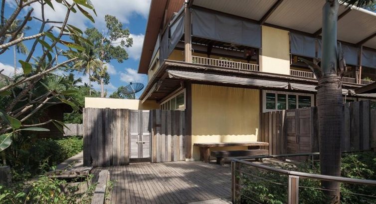 Виконаний із дерева в сучасному стилі - кожна вілла з невеликою територією, оточеною парканом: