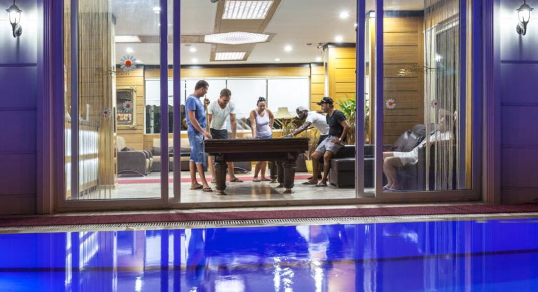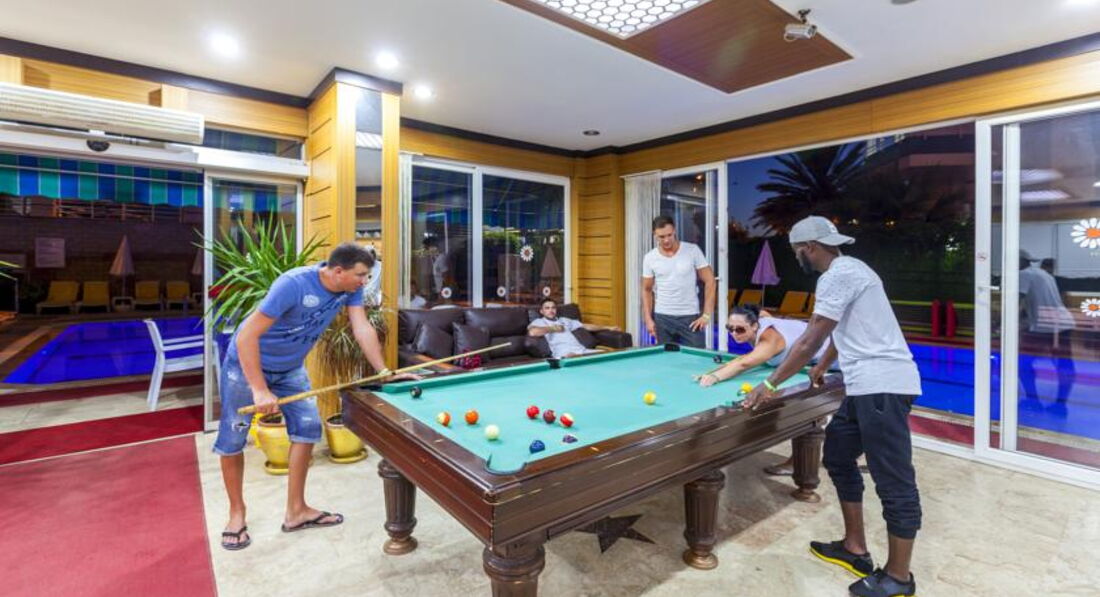 2. Сервис. Это просто фатальное нечто) Из ВСЕГО персонала есть только 2 молодые девочки турчанки, которые пашут и стараются быть не грубыми. Остальные вообще страх потеряли) Турок Сережа, который держит ларек прямо на 1 этаже отеля имеет смелость говорить в тихаря на русских "Pidoras" и в лицо "Durak")) при этом обкуренный постоянно) глаза не врут) а после того как ляпнет это берет телефон и типа говорит по нему для того чтобы русские его за это в бассейн не кидали в вещах и не давали выползти)) аниматор вообще нулевачка беспросветная) в 9 вечера начинается программа детей, играет песенка Арам-зам-зам Арам-зам-зам и после зарядки (иначе это не назвать) он водит под музыку деток вокруг столиков) конец детской анимации) взрослая бывает иногда но там вручается турецкая народная песня и турки под нее танцуют) два раза за неделю ставил еще и русскую народную)3 дня из 7 анимации не было вовсе) но зато каждый день подбивал всех идти на дискотеку в клуб городской) имел откат за это) поехали дальше) на волебольной площадке в песке огромные плоские камни размером 1х1м... самолично выбил об один из них палец и об сторой стер колено, когда падал за мячом) страдали все и я лично вдел стертые колени почти во время кадой игры) никто и не думает их выкопать или разбить и достать) они огромные и самолично их не достать) я полагаю это работа отеля) но после того как выбил палец попросил бинта обмотать на что мне ответили выходите из отеля налево и там 200 метров до аптеки) олл инклюзив)) потом выбил на пляже у спасателя бинта) после чего 2жды свой покупал) в 4 часа песок обжигает ноги как по утюгу бегаешь) смотрим в соседнем отеле beachboy поливает из шланга водой площадку чтобы туристы могли нормально играть не в тапках) подходим к нашему и он говорит мол берите шланги, стыкуйте их или руками держите и подключайте к крану) самолично дал только ключ от крана не выходя из своей берлоги))) напитки на баре не дают больше 1 стакана на челвоека) так что если захотите принести своей девушке попить надо будет либо 2 раза ходить либо идти с девушкой) это не критично но просто некрасиво и не олл инклюзив)) отдельное внимаение паскудному турку Махмеду) он там ходит разводит людей на турецкую баню и массажи) вы сходили и баня вроде хорошая) ездит по ушам мол 35$ стоит но сейчас скидка 25$ (торгуйтесь и за 20 согласится)) потом у вас после массажла который входит в комплект к хаммаму (это и есть баня) находят болячки) соли отложились и надо разминать, ноги больные или плечо негибкое)) и говорит мол мои масажисты исправят за 5 сеансок) 100$ стоит) тоже по скидке) сходил 2 раза и спина на утро просто колом стояла и болела) говорю ему мол от твоего массажа хуже стало и болят ПОЗВОНКИ не мышцы а ПОЗВОНКИ И СУСТАВЫ ( не путайте это, я сам спортсмен в прошлом и знаю что при массаже на мышцы нормально если на утро они болят из-за того что их растягивали, но мне болели суставы, а это уже микротравма) на что получил ответи что деньги он не возвращает после чего уткнулся в телефон чтобы и его не кинули в бассейн и как будто не слушая вас уходит в свою обитель при этом наступая на тапки туристов и разрывая их и даже не извиняясь)) так было просрано 60$ и была бы это не Турция я бы выбил их из него, но там кучи турков и это черевато) вай фай вообще платный 20 евро стоит и к тому же вечно отключается)) бильярд платный настольный футбол тоже)) 