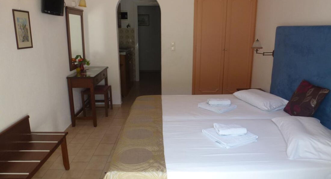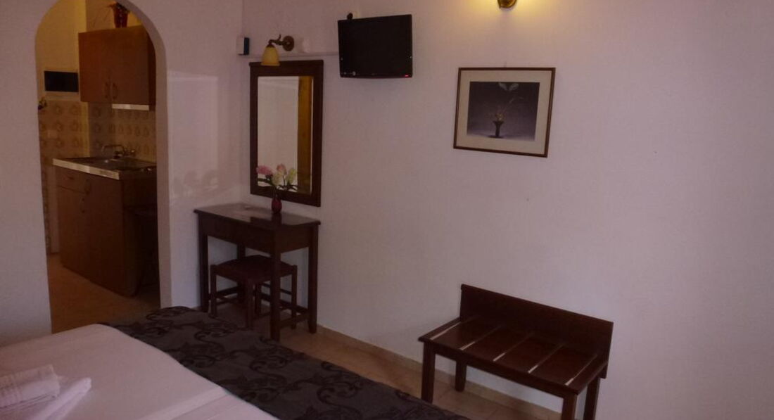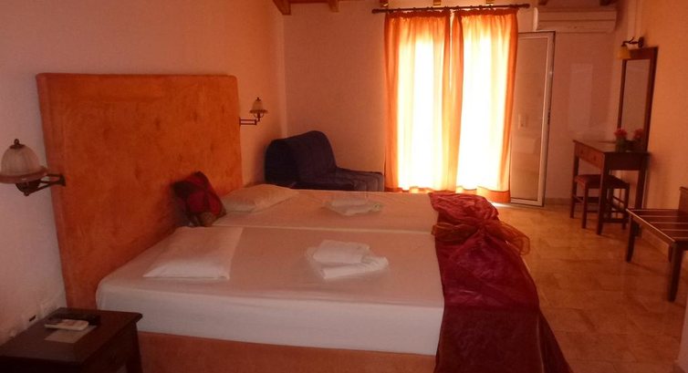 Маленький готель біля пляжу. Просторі номери з кухонним куточком, інтернет. За два кроки від готелю безліч магазинів, барів, грецьких таверн. Підійде для економічного насіннєвого відпочинку. Оновлений в 2009 році. Розташований через дорогу від готелю Galini Sea Apartments.