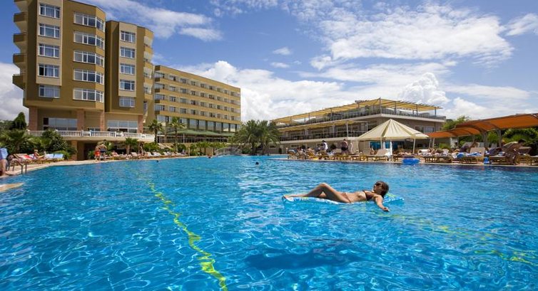 Отдыхали с дочкой с 14 по 21 октября.Сомневались по поводу погоды. Но разочарованы не были. Море-чудное,ласковое,теплое.Солнце бархатное. В бассейне ни разу не купались.Дочка попробовала на горках-не удобно,крепления мешают.Пляж -крупный песок,ближе к морю-галька.Номер дали трехкомнатный.На одном уровне-две комнаты и санузел ,пять ступеней вниз-основная спальня с телевизором,сейфом,холодильником,кондиционером. Там же маленькая лоджия с сушилкой.А от основного входа вверх на несколько ступеней-большой открытый балкон буквой Г .А с торцов-вид на море.Мебель,сантехника,ремонт-не первой свежести,удивили ключи -обычные металлические.Но всё работало.Мы приехали купаться и загорать,в номере только мылись и спали,поэтому недостатки не считали. Еда нормальная,голодные не ходили,без изысков.После Лимак Лимры была в шоке дня три,потом поняла,что сравнивать нельзя.Мороженое не каждый день и очередь. Мохито - платно.Просто несколько лет подряд ездила в ультра и думала,что это норма.Не очень удобно,что интернет только на ресепшен и рядом.У нас было огромное желание отдохнуть под ласковым солнцем,которого не хватило летом,поэтому наслаждались погодой.Столько никогда не купалась,только в детстве. За чем ехали-получили сполна.Спасибо!!!!