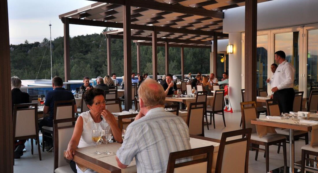 Но есть одно: осы. Это какой-то кошмар. Есть на террасе реально только вечером после захода солнца. Причем осы залетают и внутрь ресторана и приходится сидеть и от них отмахиваться. Они кстати садятся на блюда с колбасой. Не пойму почему они никак не потравят их.
