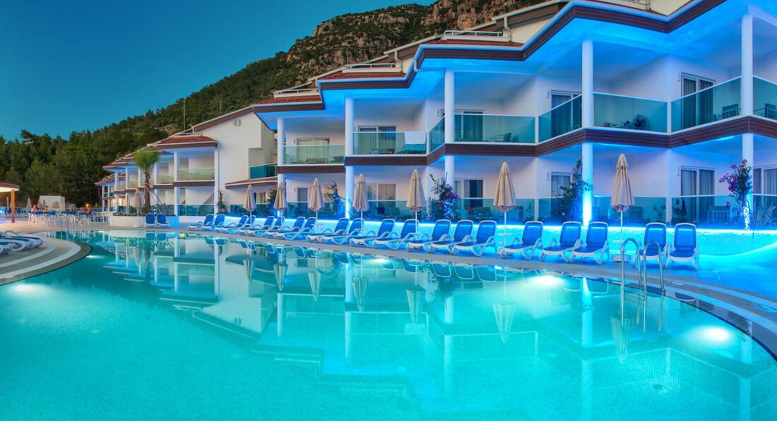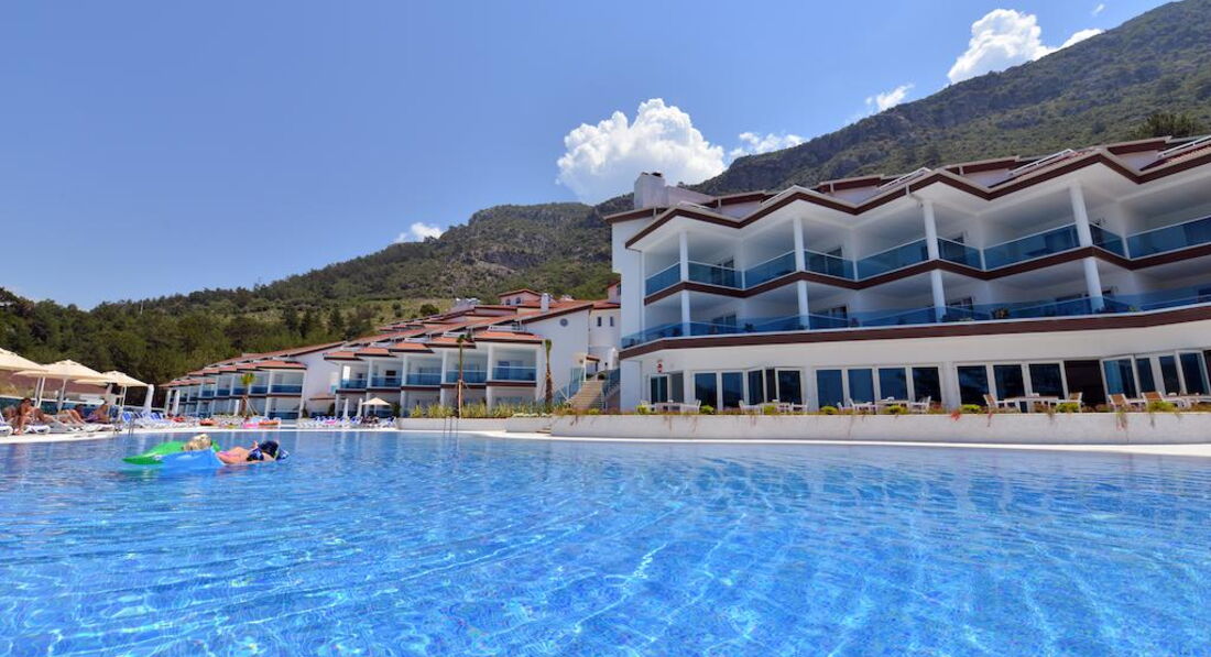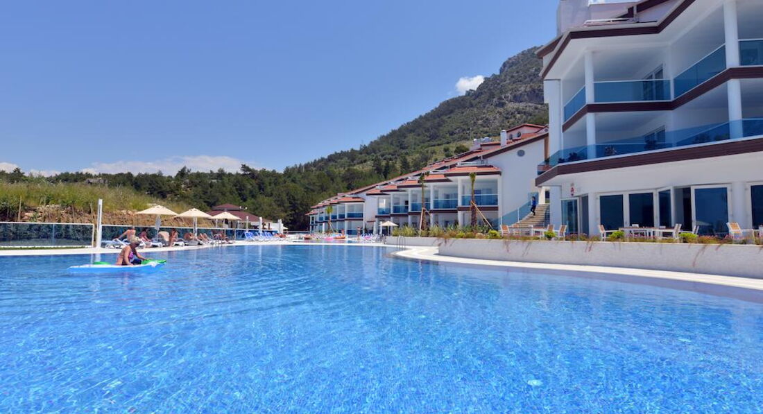 Вчера прилетели из Олюдениза. Очень хочется вернуться. В отзывах,что я читала до поездки- была претензия к отсутствию трансфера из отеля на пляж.Сообщаю: отель предоставляет два Шатла: На пляж в 10,00 и 11,00 .С пляжа в 16.00 и 16.45. На обед уже не попадаешь,но к раздаче мороженного в самый раз. Мы не страдали без обеда.Но пару раз возвращались с пляжа к обеду на маршрутке (от нее 20 минут ходьбы по хвойному лесу.Лично я от этих прогулок получила огромное удовольствие- воздух насыщен хвоей и разнотравьем.Виды из отеля это отдельный релакс.Болтаешься в бассейне и любуешься на окружающие горы,А как дышится...Пляж то же удивил живописностью.Когда до поездки читала,что все ездят на городской пляж,то воображение рисовало линию домов сзади пляжа,а оказалось,что опять любуешься на дикую природу и парящих парапланеристов (отдельный восторг).Отель соответствует пляжной пятерке.Два дня тупо провели в бассейне-любуясь на горы.Мужу понравились водные горки .Рядом с отелем начинается Пешеходный 10 км маршрут (Знаменитая Ликийская тропа(всего она 540).Виды фантастические.Не поленитесь,кто поедет в это место. Идти не сложно,мы не устали. Только лучше начать прогулку в 6 утра и в кроссовках.Я была в макассинах (подошва тонковата).В отеле почти одни англичане. Позитивные и довольные жизнью.меня устроило эдакое соседство. Анимация была на английском (который,я к сожалению не знаю),но было все интуитивно понятно.