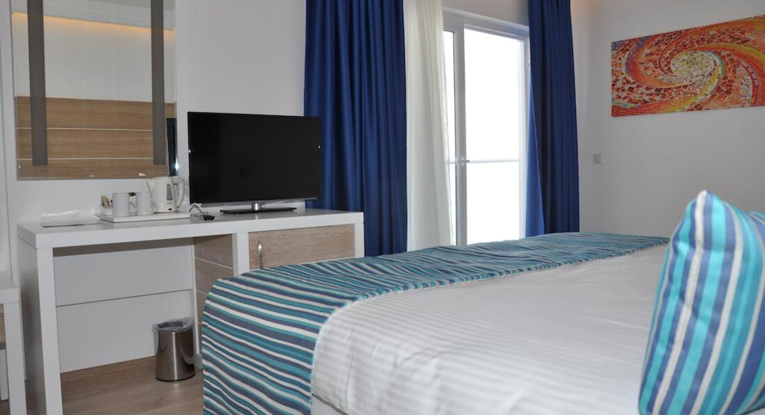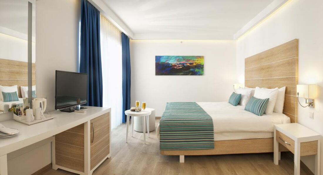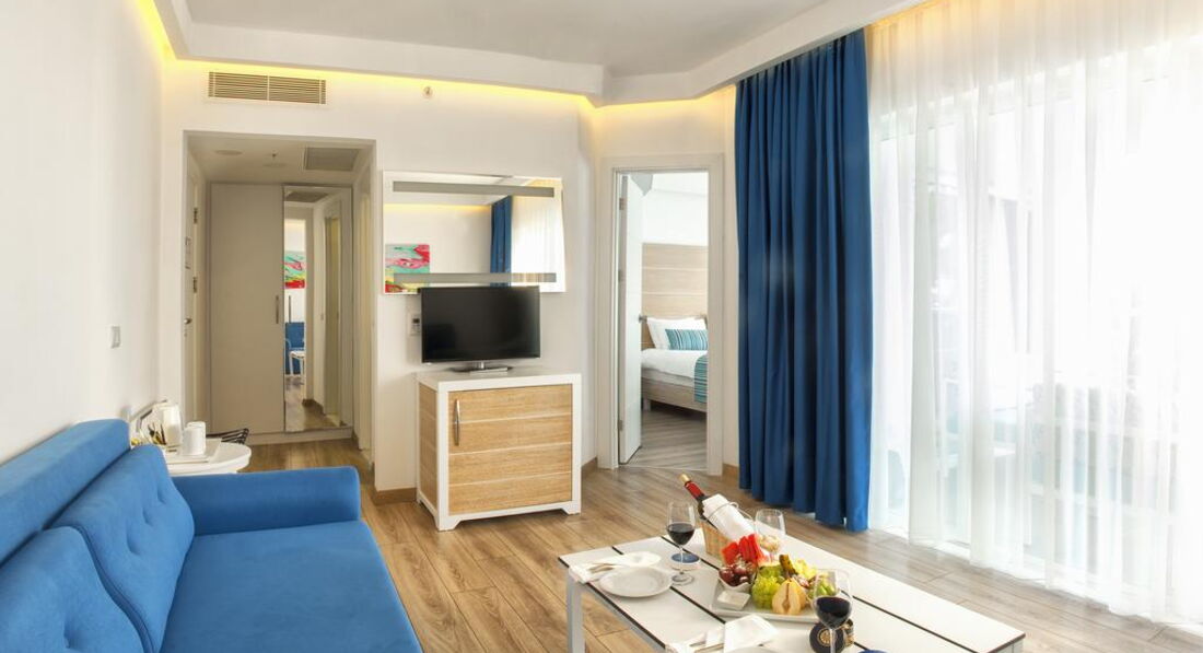 Добрый день!отдыхали с подругами(и ребенок 10 лет) в этом отеле с 01.08 по 04.08.Приехали в отель в 11-00,заселение в 14-00, в 14-30 нам сообщают,что номера еще не готовы,но при этом мы наблюдаем картину как спокойно заселяют турков!Русских в этом отели заселяют в отдельный корпус.У нас оплачены 2 номера.В итоге нам предлагают один двухкомнатный номер,что естественно нас не устраивает,т.к. нас 4 человека,номер не большой с одной двуспальной кроватью и диваном,но с выходом к бассейну.Нервы нам истрепали изрядно.Мы добились своего,заселили нас в однокомнатный двухместный номер и двухкомнатный двухместный с выходом к бассейну.Но к моменту заселения прошло 5 часов ожидания!На пляж ходит маленький автобусик,потипу маршрутки!людей забилось под завязку,привезли на пляж.Вода стоячая похожа на грязный пруд,купаться в этом болоте не реально(хотя все купаются,но каждому свое).Пляж очень маленький,нам предложили шезлонги,поставленные в проходе.В итоге мы уехали на городской пляж,где с огромным удовольствием наслаждались красивым и ласковым морем.Из отела до моря добирались на такси(7 минут).Еда -ассортимент большой с голоду не умрете,но не очень вкусно.С уборкой и заполняемостью холодильника тоже проблемы,вечно все забывают положить.Отель не тянет на 5 звезд.