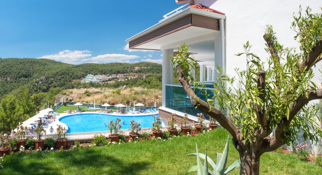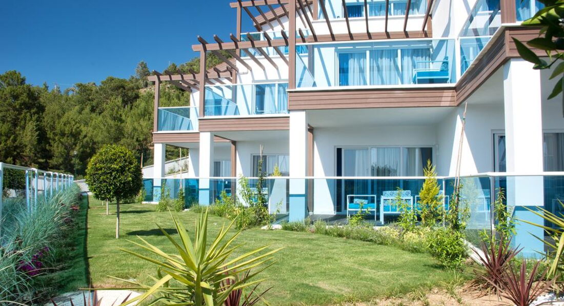 Самый главный плюс, то почему я выбрала этот отель: наличие интернета везде, в том числе в номерах! Ура! В отелях Олюдениза интернет заявлен, но он плохонький еле тянет и только в зоне ресепшн. А здесь на горе он -есть! И я, и муж очень комфортно отдохнули и, главное , поработали на отдыхе, благодаря наличию интернета в номере. Я жила в корпусе А2.