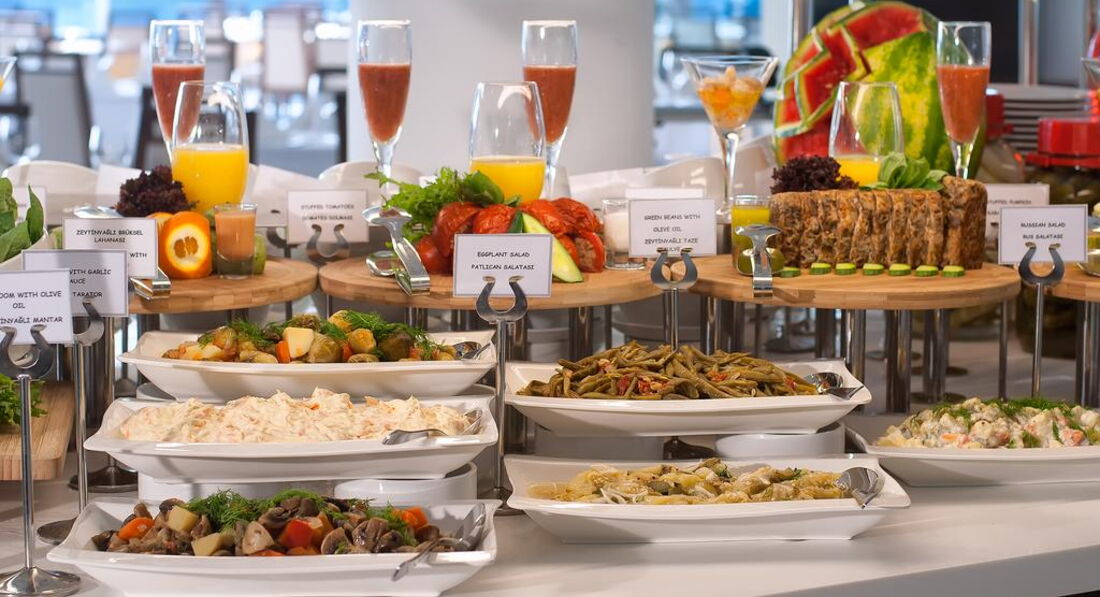 Питание хорошее, изобилие всего и мясо и рыба, салаты разнообразные (майонезные не ем, неа знаю на вкус), супчики не всегда вкусные, сладостей куча (не ем, на веус не знаю), гарниры все стандартные (рис, фри, спагетти, булгур), есть диетическое питание на пару и детское. Но детское это конечно одно название, потому что даже моя девятилетняя дочь не ела жареные сосиски или спагетти с жирным соусом. Здесь они подкачали. Теперь о вкусовых качествах: вкусного мало, вроде много всего и найти поесть естественно можно, но не все съедобное(((((. О и главный плюс это не было очередей!!!!!! В отеле в основном европейцы и они не накладывают себе в тарелки по пол лотка мяса, например, а берут пару кусочков и пошли дальше.