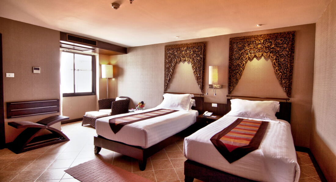 Мы попали в китайский НГ, китайцев было куча, правда они по долгу не отдыхали, дней 4-5 и новые лица в соседних номерах, народ очень шумный (если заострять внимание, в принципе беспокойства не доставляли), в бассейне плескаются и кричат с пол 7 утра, запускают фейверки, фонарики, в общем нг в их стиле. Номера в полнее приличные, чистенько, каждый день убирались, меняли постельное белье, полотенца, раз попросила горничную вытереть пол влажной тряпкой, они пол пылесосят и вытирают сухой тряпкой, потом без напоминаний мыла пол, не думайте, что я придираюсь, нет, ребеночек бегает босичком. Каждый день оставляли 20 бат чаевых, чему горничная была очень довольна. Ни какой живности в номере не наблюдалось, кроме как разок оставили сладости, муравьев набежало. Не оставляйте ни чего. Что касается еды, в отеле еда нормальная, переживала, как кормить ребенка и чем. У нас был только завтрак. Есть супчики овощные, каждый день разные и по 4 вида, выбрать можно, яички варенные, мяско вареное, овощи, йогурты несколько видов, обезжиренный, для детишек по старше куча сухих завтраков, хлопьев на выбор, в целом очень хорошо, ребеночка было чем накормить. Еда и выпивка в отеле конечно дороговато, но все равно у бассейна брали соки, 150 б, для сравнения в городе 40. Вай фай в гостинице платный, 150б час, мы потом купили местную симку интернетовскую. Экскурсии брали у нашего гида, но дешевле будет купить самим.