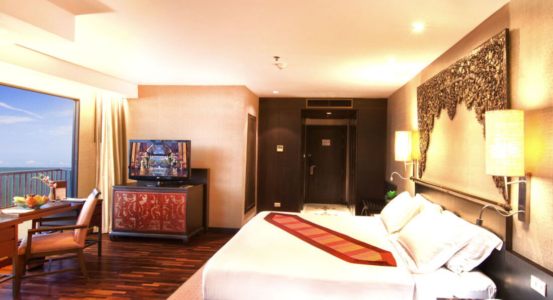 Отличный отель. Чистые номера (убирают каждый день, каждый день меняют постель). ЕСТЬ: ванна и отдельно душевая кабина, шампунь, гель для душа, молочко для тела, пластиковая шапочка, ватные палочки, бутилированная вода для умывания и полоскания рта (бесплатно), халаты, многоразовые тапочки (тапками не пользовались, покупали свои за 45 бат в 7/11). НЕТ: зубных щёток и зубной пасты. В номере: телевизор (3 или 4 русских каналов), сейф (несанкционированного отъёма денег не обнаружено), кондиционер, балкон. Хороший ресторан (брали только завтраки), разнообразно кормят, вечером в лобби играют и поют музыканты (живая музыка, не напрягает). Очень красивая территория, 4 бассейна, если смотреть из лобби, то впечатление, что бассейн переходит в море. Свой пляж, плюс в том, что на пляже отдыхают только гости отеля, нет торговцев сувенирами. Море, как и во всей Паттайе - грязное. Но в Паттайю едут не за морем. Мы не купались в море у отеля, ездили на острова. Из туристов в гостинице преимущественно китайцы (ОЧЕНЬ много), но из везде много, в принципе это не напрягало, ведут они себя тихо, как ни странно, к тому же китайцы не загорают, соответственно на пляже их нет.