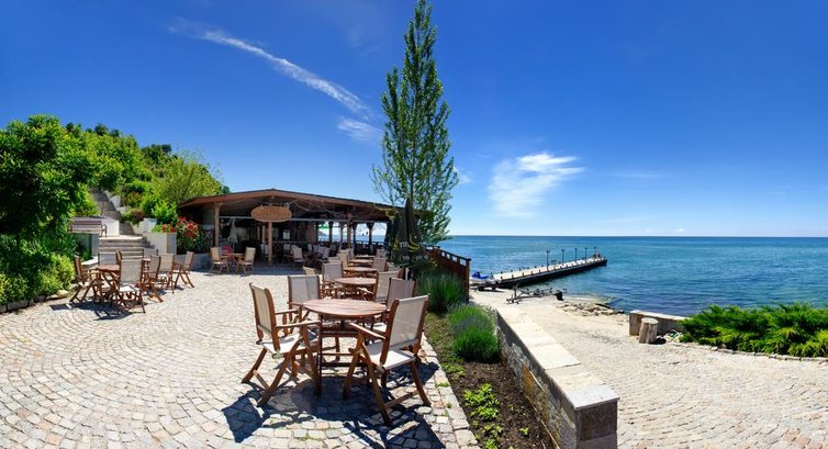 Райский сад, название отеля полностью себя оправдывает, т.к. это действительно сад! Ездили с сыном четыре раза подряд, сервис, питание, все отлично. Для спокойного отдых а с детьми вообще то, что надо. Единственный минус это пляж и море. Море, сами понимаете, Черное... Бывает и грязным и прохладным. Пляж насыпной, очень узкий и платный, лежаки и зонтики по 6 левов. Заход в море не очень хороший, есть камни, но покупка аква обуви проблему решит. Отель закрытый, на территории есть магазинчик, врачи. До города идти пешком минут пятнадцать. Могу смело рекомендовать для спокойного, но не дешевого отдыха.