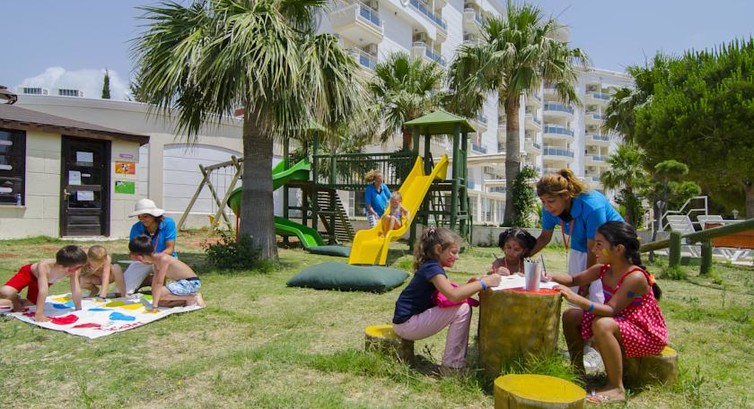 Отдыхали в отеле совсем недавно. Отель очень понравился. Размещение: перелет был у нас ночной, в отель мы приехали в 5:30 утра, заселили сразу (были свободные номера). Питание: еда вся была европейского типа, всегда были сосиски (как ни странно даже не соевые, а из нормального мяса), всегда было мясо и рыба. Много фруктов и овощей. Намешанных турецких салатов было мало (что очень радует). Уборка и персонал: уборка была день через день, денег уборщице не оставляли (соседи оставляли, она не взяла), вообще в этом отеле не принято давать чаевые (да их никто и не клянчит). Пляж: в отеле он свой, есть шезлонги, матрасы, на пляже пирс (когда с него спускаешься, на дне песочек и не глубоко, достаешь ногами до дна (мой рост 160 см). В отеле есть пляжные полотенца (тоже бесплатно). Есть детский мини клуб и небольшая площадка с качелями и горками. Бассейны: очень большой взрослый бассейн и настолько же большой детский бассейн (очень удобно, есть где развернуться ребенку). Рядом с отелем есть "Луна парк", есть на чем покататься (билет на одну карусель, на человека 5 лир). Турки, которые предлагают экскурсии и услуги не навязчивые, только спрашивают хотим или нет, если нет то сразу отходят.