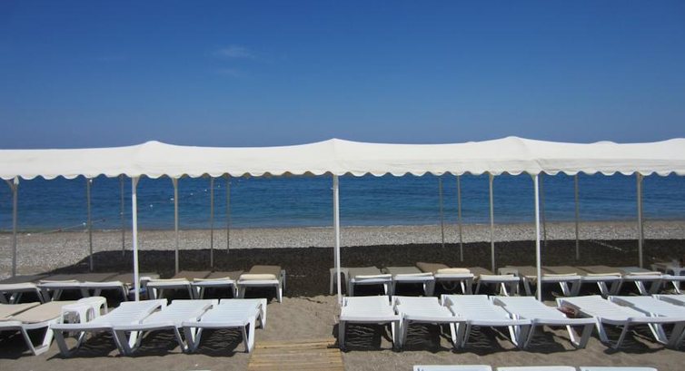 ПЛЯЖ И МОРЕ. Отель я выбрала именно тогда когда увидела пляж. Вообще пляж стал моим самым любимым местом. Зеленая зона возле пляжа, живописный бар (в обед привозили перекус, но с маленькими детьми лучше обедать в отеле. Т.к. это картошка фри и наггетсы с овощами. Неплохое мороженное , даже самое дешевое). Можно брать на вексель, как и катамаран с лодкой. Вид с пляжа на горы- захватывает дух! Вода чистая, очень соленая. Стайкам плавают рыбки. Песок+ мелкая галька. Возле берега есть большие камни, но не у самого берега. Будьте внимательны они справа недалеко от буйков. А также слева-за буйками. Но мне все равно очень понравилось. Лежаков много, пляж всегда чист. А самое главное-он "на отшибе" от других отелей. Ощущается полное единение с природой, особенно когда отдыхающие уходят на обед в отель или утром до 10 утра.