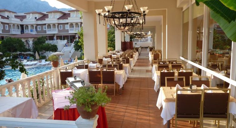 Бари та ресторани: головний ресторан розрахований на 500 осіб (критий, з кондиціонером, літня тераса, дієтичне меню, дитяче меню, дитячі стільці), бар біля басейну (10:00-22:30), бар на пляжі (09:00- 17:30), пекарня (10:00-18:00), Harem-бар (18:00-24:00), диско-бар (23:00-01:00). Ресторани A la Carte: турецька, італійська, французька - платно, за попередньою резервацією.