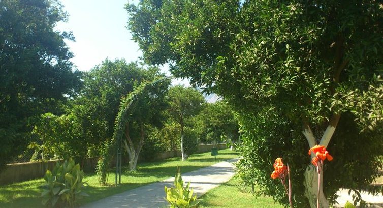 Террритория отеля чистая, маленькая и красивая. Вся сплошь в апельсиновых, мандариновых и прочих деревьях и кустарниках.