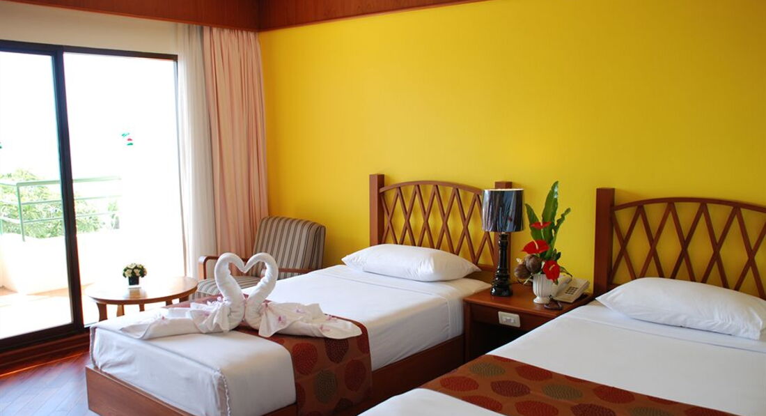 Уважаемый туристы, рекомендую данный отель для спокойного, семейного отдыха. Начнем с заселения. Прибыли в отель, примерно, в 10 часов утра, заселили нас сразу, без проблем. Приготовьте за ранее 2 000 бат, так как курс в отеле не очень выгодный. Ежедневно в номере меняли полотенца, халаты и прочие предметы в ванной комнате. Балкон большой, но пустой, поэтому 2 кресла и стол были перемещены из номера на балкон. У нас был номер с видом на море и частично на территорию. Вечером территория освещается и вид радует глаз). Кондиционер работает прекрасно. Вся техника в номере исправна. По санузлу, так же, нареканий не было. Завтраки хорошие,есть фрукты голодными не останетесь.Минус, лично для нас, не было морепродуктов и рыба была, только 2 раза. Ресторан и бар работают прекрасно, готовят вкусно. Вечером в ресторане поет тайка на русском языке (старается, по крайней мере). Можно, к примеру, сходить в ближайший супермаркет взять еду и алкоголь на свой вкус и вечером посидеть в ресторане, заказывать у них, что-либо не обязательно. Массаж на территории отеля, прям на берегу моря приятно удивил 1 час-300 бат. О прекрасном отдыхе и плюсах этого отеля я могу писать бесконечно. Теперь о минусах: