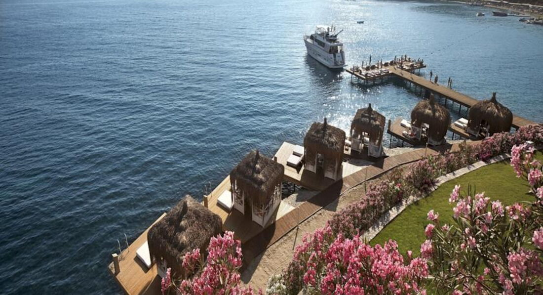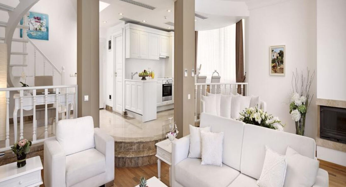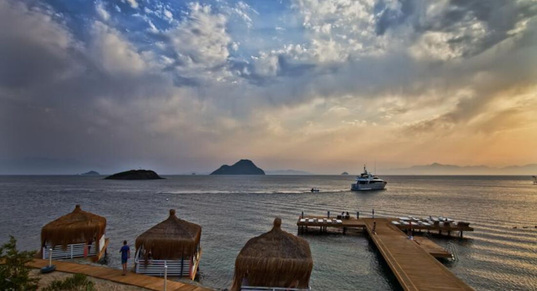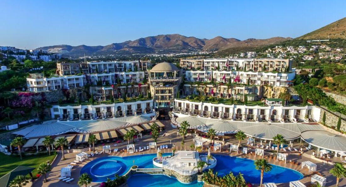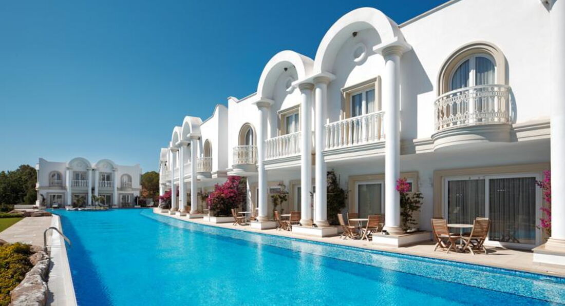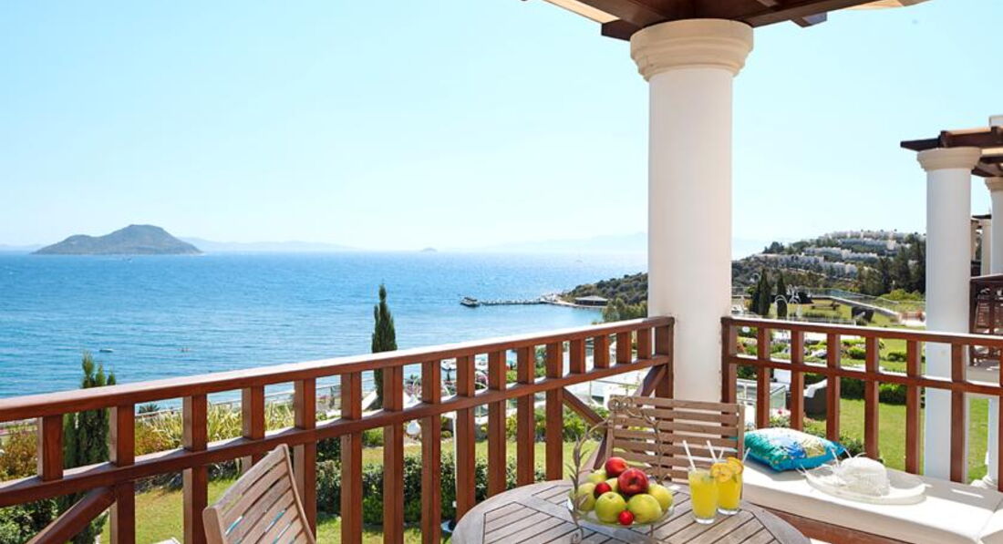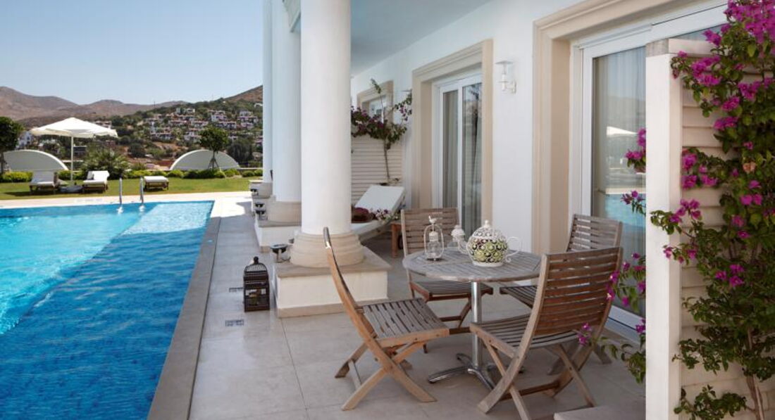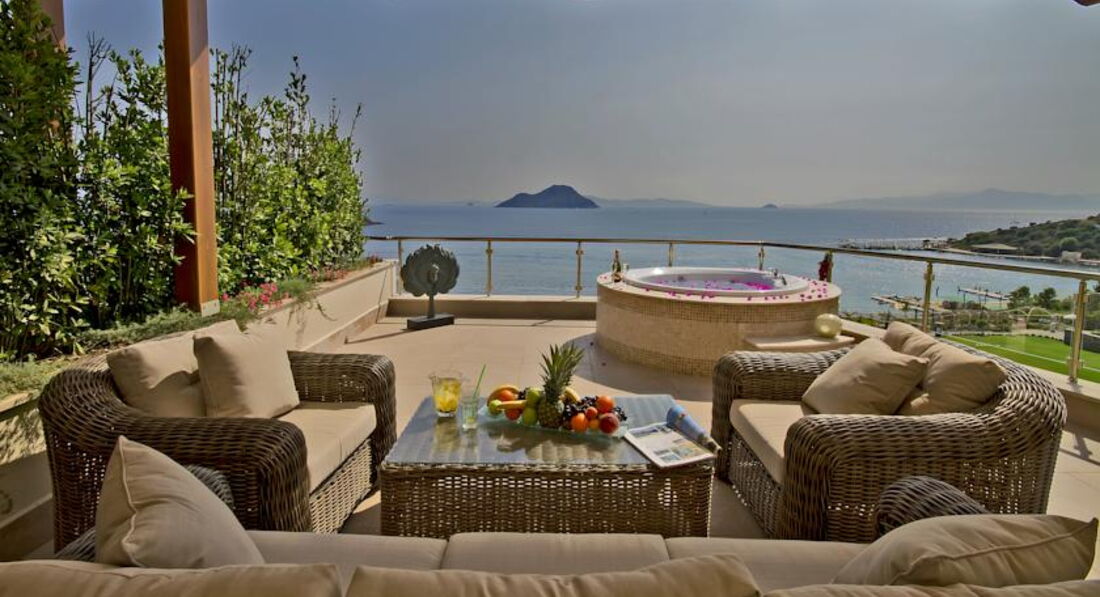В Бодруме, и вообще на Эгейском море, были в первый раз. Отель выбирала сама, заприметила его вскоре после открытия. Окрестности впечатлили еще на летном поле: зеленые холмы, чистое небо... Отель тоже внешне очень понравился, все соответствовало фото на сайтах. У нас была оплачена Венус вилла с выходом к бассейну, с двумя спальнями. Номер задуман красиво, большой, светлый. Что не понравилось: в номере белая мягкая мебель. Подлокотники кресел и дивана затерты до откровенно грязного вида, даже если их чистят, то визуально мало заметно. Думаю, что в этом случае, гораздо эстетичней было бы применять съемные чехлы, тем более, что сам диван застилают покрывалом и меняют по мере загрязнения. Будьте готовы к тому, что утюг вам не дадут, все вещи нужно отдавать в глажку за отдельную плату(это не минус, а просто для таких невнимательных, как я). В номере стоял чайник, но, как оказалось, чтобы вам принесли чашки с блюдцами и ложечками, а также сахар, чай, кофе(при "все включено", заметьте) нужно дополнительно об этом попросить. Причем, просить регулярно. При этом, в номере имеется плита, посудомоечная машина. Принадлежности для ванной комнаты( шампуни и пр.) докладывали не по мере их использования( как принято обычно), а по прихоти уборщицы. Не хотелось бы, чтобы читающие подумали, что я этакая привереда. Но, если отель продается, как отель для взыскательных клиентов, да еще по системе Элит, да и цена отнюдь не "детская", то, думаю, многие со мной согласятся: это не те вопросы, которые должны волновать и омрачать отдых. Территория отеля компактная, пляж хороший и заполнялся при "аншлаге" наполовину. Что не понравилось на пляже: громоздкие лежаки, лежать на них удобно( они, кстати, тоже изначально белые), вот ворочать их по солнышку не получится. Приходилось " прыгать" по лежакам, то в тень, то на солнце, благо, народу было мало. Питались мы в основном ресторане, нас вполне он устраивал. Перечитала написанное, вроде бы и правду писала, а как-то занудно получилось. Думаю, это потому, что отель, на самом деле, чудесный, и хочется, чтобы все в нем было супер, без малейших недостатков. Понравилось, что нет никакой назойливой анимации, релакс полнейший. Вид с пляжа, да и со всей территории , прекрасный . В отеле несколько русскоговорящих сотрудников: Ирина - в лобби( очень профессиональная , доброжелательная, терпеливая), Нагима - в СПА ( им большое спасибо за помощь!), а также, в основном ресторане, официант Ехан( произношение имени адаптировано к русскому уху), он учился в Минске, говорит свободно. В целом, отдых в отеле понравился, сейчас вспоминается, как спокойный, комфортный и с хорошей атмосферой благожелательности. Буду рада ответить на вопросы, если у кого-то возникнут. Да, туроператор Корал Трэвэл даже не знал, что в этом году в отеле поменялась концепция питания. Вместо " все включено/а ля карт" - " все включено". Спасибо Ольге и Ларисе( писавшим отзывы об этом отеле ), что ответили на мои вопросы перед поездкой. Хочу пояснить, за что поставила 4 ( сервис): отелю следует обратить внимание на уборщиц из Болгарии. Наша была очень назойлива, притом, что я ее практически не понимала, все время хотела с нами побеседовать или настойчиво пыталась обменять монетки по 10 копеек, явно из бассейна. Обычно, я людям сочувствую, но это было слишком. А весь остальной персонал - супер!!!