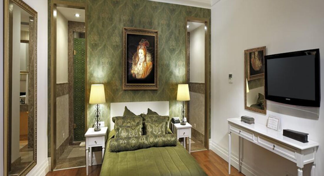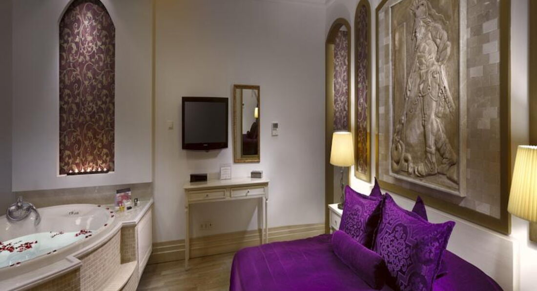 Заселили нас просто мгновенно, мы и не ожидали. Но как потом выяснилось, отель заявлен как "бутик-отель" и там всего около 100 номеров (а именно - вилл и сьютов), поэтому массовых заездов-выездов не бывает. Номер..слов не хватит чтобы его описать! Королевский сьют с декорациями в стиле "Цезарь", двухэтажный, с джакузи с видом на море и раздвигающимися с помощью пульта шторами в 2 этажа! Смотрели мы потом и виллы (так просто поинтересовались, а нам сразу предложили посмотреть), тоже супер, особенно для семей с детьми - и с бассейном, и собственной зеленой терассой, но свой "цезарь" мы бы все-равно не променяли =)