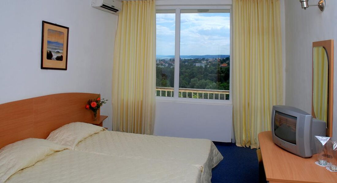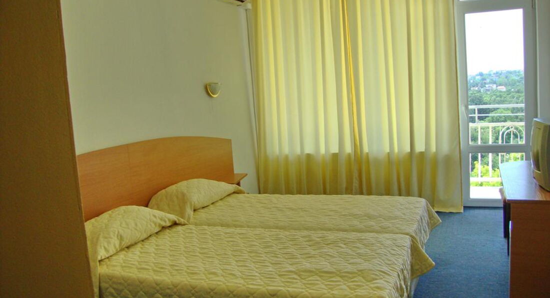 Выбрали этот отель, т.к. по нашему бюджету мы укладывались на все 100%! Для 2* просто отлично! Для молодых,не ленивых и энергичных вообще идеально подходит!!! Нормальные завтраки (при том, что это шведский стол, 2* обычно предлагают ужасно континентальные завтраки, как например в Италии), есть кондиционер, мебель хорошая,телевизор, вид из окна на замечательной красоты горы, пройтись до моря само удовольствие (не для ленивых, но в Болгарии полезно, т.к.с очень низкими ценами в ресторанах и кафе не хочется себе ни в чём отказывать), остановка автобуса находится близко - сел, 15 минут проехал и ты в Варне (можно пройтись до рыночка фруктово-овощного и на 50лев - это 100руб.- накупить мешки фруктов). У моря можно спокойно заказать экскурсии, могут сделать даже скидку, мы брали в Несебр, нам безумно понравилось! Не пожалеете! А вообще, можно снять машину за 40 евро и везде самими помотаться, но у нас было мало дней и мы так и осуществили это. У отеля есть свой пляж, его надо конечно поискать, но и это не так сложно сделать - есть лежаки и шезлонги, а самое главное не так много людей, как на других пляжах (можно сравнить с нашим черноморским побережьем!). По пути к морю есть 2 ресторана больших, были и там и там! Понравились оба, порции огромные, так что можете спокойно заказывать одно блюдо на двоих, средний счет со всеми явствами на 30-35 лев (это 600-700руб. ни в чем себе не отказывай). Так что приезжайте, отдыхайте, наслаждайтесь морем, солнцем! Не ищите минусы,не портите свой отдых, ищите плюсы! Хорошо отдыхают те, кто хочет хорошо отдохнуть!