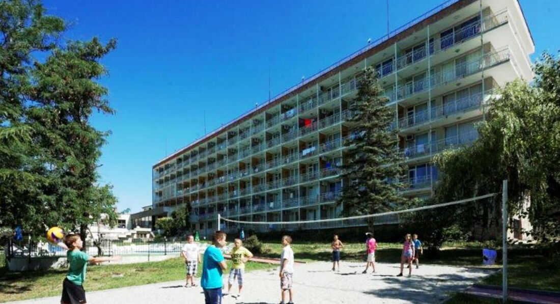 Для детей просто СУПЕР!!! В отеле сделан полный ремонт. С 2014 года это уже не просто отель, а Международный детский центр «АЛЬБАТРОС-ГЕОЛОГ» и занимает площадь 140 соток. Из отеля открывается прекрасный панорамный вид на берег моря, г.Варна и Ботанический сад. Проживание в номерах четырёхместное (душ, с/у, в номере), питание ALL INCLUSIVE 5-ти разовое (шведский стол). Открытый бассейн с минеральной водой – с размерами 25 на 10 м. (зонты и шезлонги – бесплатно), универсальная площадка – футбольная и баскетбольная, с размерами 31 на 14 м., покрытие – искусственная трава, 2 волейбольные площадки 21 на 12,8 м. – искусственная трава, 15 на 7 м. – песок.