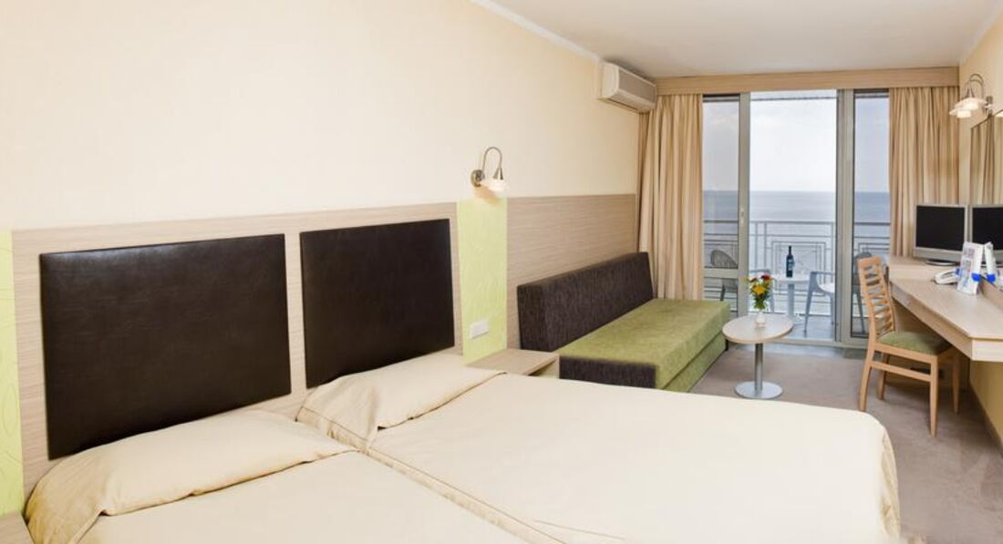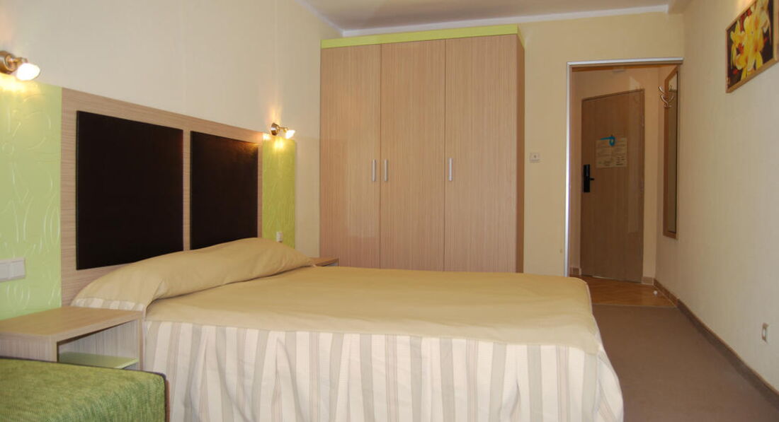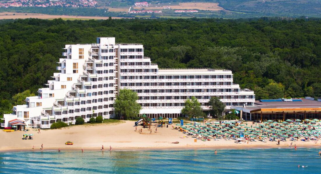 Ездила с ребёнком 3х лет на 10 дней. Отель совецкого типа точно как на фото. Ничего особенного. После Турции, Египта т.д. очень скромно. Номер чистый но старенький( стены кривые , ковралин потёртый, мебель обыкновенная и больше всего меня поразил балкон, он почти прозрачный. Очень не приятно сидеть вечерком смотреть на море и вдруг выходит из соседнего номера немец в трусах. Мы были в корпусе А. Просите корпус Б там отдельные балкончики да и вид на море лучше и тише. Пошли на обед фууууууу!!!! Просто ужас. Картофельное пюре из порошка, катлеты пережаренные, мясо можно есть только курицу. Салаты в рот не возможно брать горькие не вкусные. Ели только помидоры и огурцы, курицу и катрофель отварной. Если жарили баклажаны или перец типа болгарский то всё горелое. Мне так хотелось подойти и сказать ,что у вас горит! Спрашиваю у болгар у вас всё это своё ( баклажаны, перец, арбузы и т.д.????) Оказалось нет. Вообщем еда однообразная и не вкусная. Бе. Болгары все доброжелательные и улыбчивы, но конфликт у меня был. С менеджером ресторана. С пустя пять дней отдыха я с ребёнком прихожу на ужин, сажусь за любой стол и слышу крики немцев. Одна бабуська и дедуська смотрят на меня и выразительно мне что то объясняют, далее подбегает ко мне тётенька и на ломанном русском начинает говорить, что какого хрена вы сели за этот стол? я вообще офигела. Что это было? начинаю объяснять что мы кюшаем тут. Ну вообщем оказывается, как турист приезжает за ним записывается столик , но только на ужин. Я спросила её фамилию и жалобную книгу и вдруг она стала у меня просить прощение и посадила за тот стол , который я пальцем показала. Потом она ещё долго здоровалась со мной. Территория отеля не большая всё как обычно, пляж, бар, бассейн. Что касается пляжа ,то песок грязный, но есть плюс очень много ракушек это ребёнку понравилось. На номер по два шезлонга ,так что места на пляже были всегда. А Вот море это ещё одщин прикол!!!! Приехали мы и сразу пошли смотреть на море, а вот запах был у него отвратительный. Много водорослей, грязное, мутное. И я заметила если зайти в море ножки по мочить то в воде плывут какие то чёрные непонятности ! Я подумала , что это травка от водорослей, но когда меня стали кусать вот тут был от меня не реальный визг. Ужас! они с усами. Это червяки. Кошмар. Растительность как в москве. Даже цветочки на территории отеля растут правда сухие. Много немце стареньких, румын с кланами семейными, даже итальянцев услышала. Анимация детская в виде дискотек обыкновенная ,просто на сцене детишки пляшут под песенки. Весело потому, что дети. Взрослую не видела. Ну что ещё об отеле ? Больше не поеду!!!!!!!