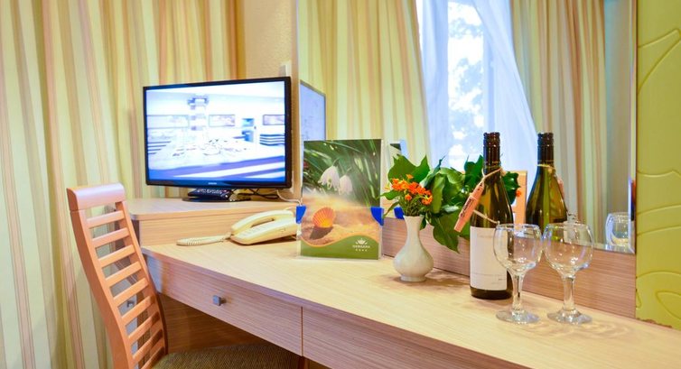 Отель твердая четверка. Отдыхала с ребенком 2,5годика. Хорошая еда, в это время много фруктов (арбузы, дыни, персики, нектарины, яблоки, киви, слива, бананы, и чего-то еще). Территория не большая, но в Болгарии это и не нужно. Море теплое и не очень соленое. Песок мелкий, для детей сама то. Бассейн не большой, но удобный с не большим водопадом. До центра можно дойти пешком минут 15 через заповедник, можно доехать на параврзике 2 лева (1евро) с человека. Так же ходит такси и еще можно взять в аренду, на час или сколько вам надо, четырехколесную рикшу, очень удобный транспорт. В центре два лунапарка с атракционами. Курорт не большой и не шумный. Большое количество экскурсий, почти в каждую входит дегустация вин месного производства (хорошие), есть экскурсии для детей (дельфинарий и морская прогулка). В этом году отель закрывается на реконструкцию, так что к следующему сезону будет обновлен. В столовой проводились тематические вечера с разнообразной кухней, выбор не очень большой, но вкусно, нам подавали ягненка, сома запекали, креветки имидии, очень часто была запеченая индейка и очень вкусный плавленный пармезан, он стоял на такой подставке с лампой и плавился подходишь и отрываешь кусочек. Недалеко находится автовокзал, оттуда можно сесть на а втобус и доехать до любого близлежащего города. Мы ездили дважды в Варну (не плохой шоппинг) автобусы каждые пол часа. Персонал в отеле дружелюбный все говорят по русски. Там вообще везде по русски говорят. Очень советую с маленькими детьми! Почти каждый вечер анимация (самодеятельность конечно), но если делать нечего посмотреть можно. Короче очень хороший курорт.