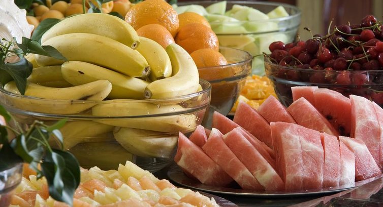 - много разных фруктов в ресторане;