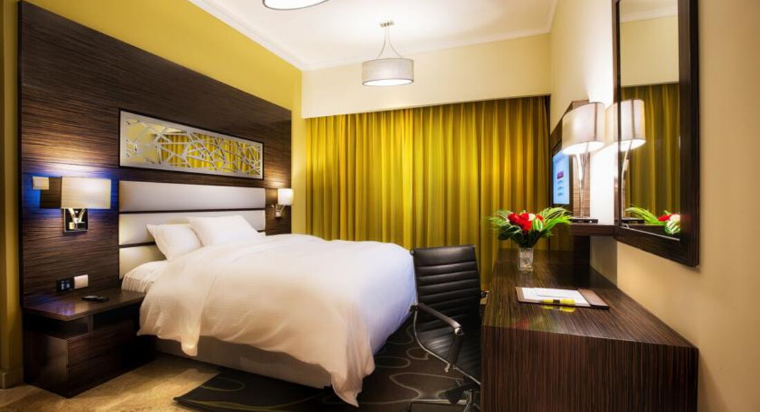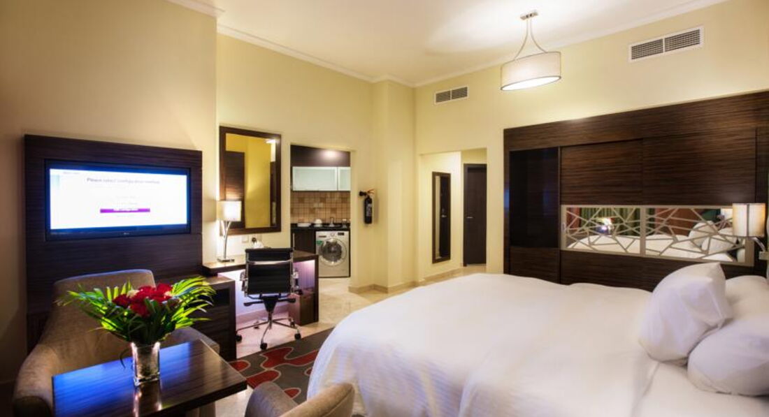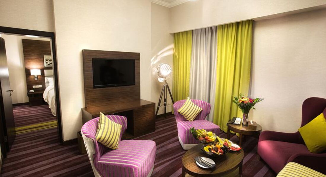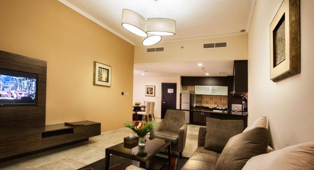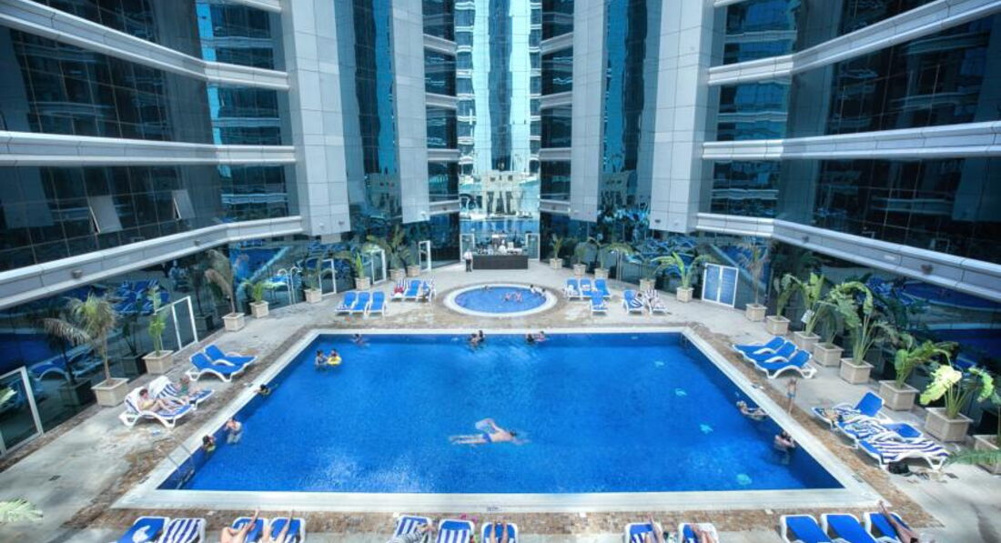 Мы с мужем много путешествуем. Недавно вернулись из Индии и решили ещё на неделю махнуть в Дубай. Отель помогала выбрать турфирма. Прочитав отзывы мы остановились на нём и не пожалели! Отличный отель. Мгновенное заселение. Очень приятный персонал. Мы остановились в номере1919 на 19 этаже, состоящем из спальни, гостинной, кухни и двух санузлов! Очень большой номер, просторный, новая и комфортная мебель. Очень большая и удобная кровать. Высыпались на все 100%. На кухне есть всё для жизни и даже стиральная машина с сушкой. Приходя с моря, всё забрасывали в машину и доставали вечером чистым и сухим. Очень удобно. Стыдно, но я даже ленилась помыть чашки и тарелки. Всё оставляла в мойке, а по возвращении кругом чистота. От отеля два раза в день курсирует автобусик до пляжа и обратно и вечером до Эмират молла. Удобно, совсем не пришлось тратиться на дорогу. Всё пунктуально. У нас были только завтраки, но судя по ним не сомневаюсь в обедаз и удинах. Разнообразное меню. Много блюд, состоящих их горячего, омлетов, блинчиеов, выпечки, фруктов, орехов, сыров, холодных закусок, йогуртов и т.д. Свежевыжатые соки, вкусный кофе и уютный ресторанчик. Пару раз были у бассейна. Красота, чистота, зелень и опять же очень внимательный и дружелюбный персонал. Мы ездили на экскурсии много и на море, по вечерам в магазины, поэтому остальные услуги не удалось попробовать, но уверены, что в отель мы вернемся. И будем рекомендовать своим друзьям. Забыла сказать, что не смотря на удаленность отеля от центра, дорога занимает не более 15 минут в чистом автобусе с кондиционером. Спасибо руководству и персоналу отеля за те впечатления, которые остались у нас. Желаем вам процветания и побольше туристов.