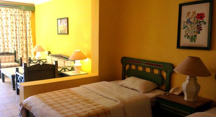 Отдыхали в сентябре 2014 г. Семьей с двумя детьми ( 11 и 3г. ). По приезду были приятно удивлены, разместили довольно быстро и накормили, хотя приехали в отель после 23.00. Конечно же нам предложили ( за отдельную плату ), номер в более уютном месте. В дальнейшем ни сколько об этом не пожалели, т.к. нам предоставили номер в отдельном 4 этажном здании. Номера там на много удобней!)))) Сам отель состоит из множества малюсеньких бунгало, не знаю как остальным, но нам показалось, там очень не удобные номера. Напоминает более современные бараки (((( На территории отеля совсем не чем заняться, почти все находится в разрушенном состоянии, как заброшенный пионерский лагерь. Анимация отвратительная, только на немецком языке и той почти нет! Вечерних развлечений тоже почти нет, развлекательных шоу после ужина очень мало и на немецком языке. Дискотека на территории отеля отвратительная.( ее можно сказать нет вообще) Еда очень скудная и однообразная!((((((( Единственный плюс ( для тех, у кого маленькие детки), это пляж!!! Чистый песочек и очень мелко, для малышей - просто рай))) Еще пляж и море может понравится женщинам, которые не особо умеют или не любят плавать. Можно развалится на берегу, как морские котики и получать полный релакс! Морской живности и кораллов здесь вы не увидите ( изредка можно увидеть малюсеньких рыбок ). Обслуживание номеров - отвратительное!((((( Несколько раз приходилось заново приглашать обслуживающий персонал в номер, чтобы принесли чистые полотенца ( т.к. они " случайно" забывали их поменять ), так же могли не поменять простынь или пододеяльник , просто их переворачивали, фу(((( Приходилось постоянно зазывать персонал и тыкать их носом. Причем наблюдалась странная тенденция, когда оставляли персоналу денюжку, они начинали филонить, а если ни чего не оставляли, убирались очень хорошо! Итог таков - отель реально тянет на троечку, не больше!!!!!!! Еще раз отдыхать в этом отеле мы точно не будем!(((((