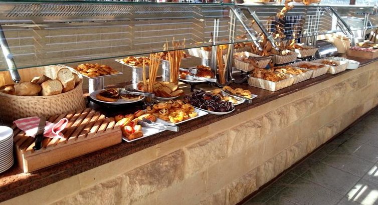 Завтрак состоял из: свежих овощей, вареных яиц, сосисок (пару раз котлетки, не очень((), помидор запеченных с сыром, сырной и колбасной нарезки (по 2 вида), брынзы смешанной с помидорами и еще чем-то, вареной картошки нарезанной кубиками (1 раз пюре), фруктовый салат, различная сладкая выпечка, блины, вафли, йогурт, джемы, масло.