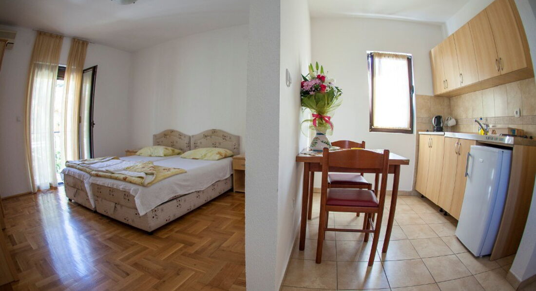 Розташування: в тихому містечку в центральній частині м. Будва, за 5 хвилин від готелю «Олександр», за 300 метрів від берегової лінії.
