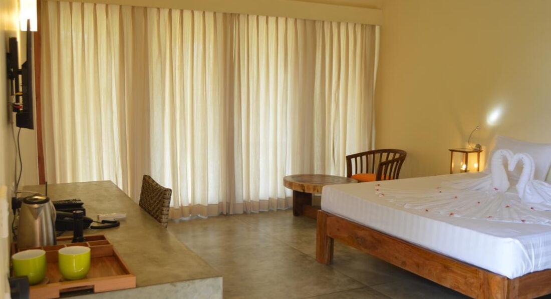 •Двомісний номер Делюкс |з 1 ліжком та видом на море|.
