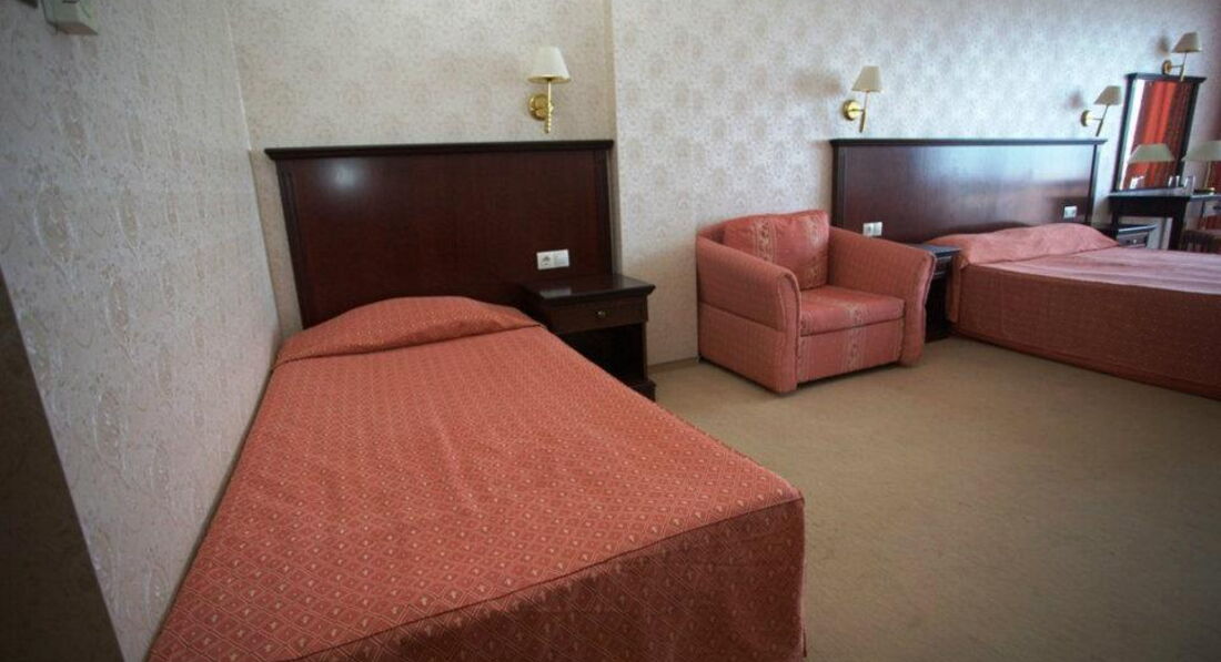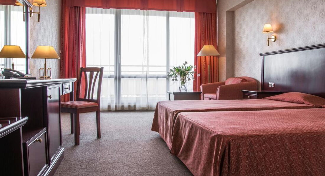 Отель - твердая четверка, главный плюс - расположение в 50 метрах от пляжа, в южной тусовочной части Золотых песков. Рядом - масса дискотек, клубок, ресторанов и кафе. Обстановка в номерах нормальная, все необходимое имеется. Вид на море - шумная сторона, имейте в виду!