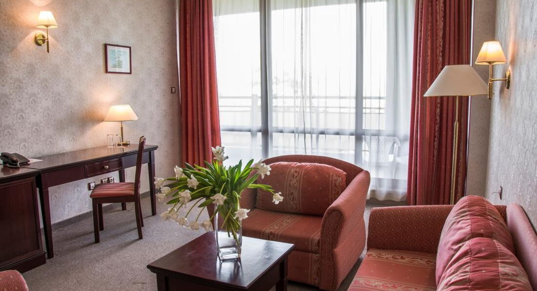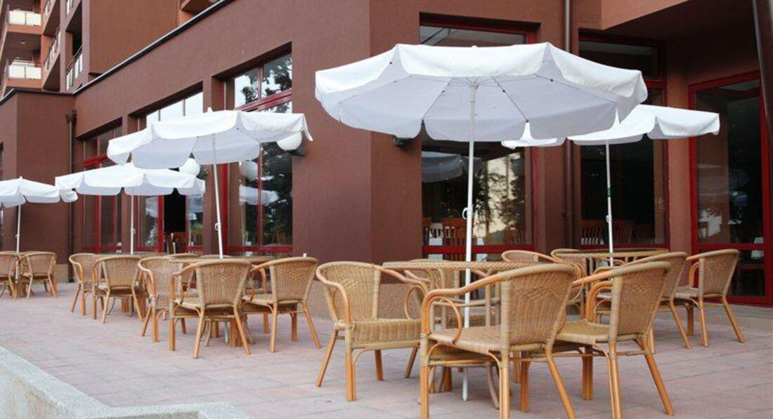 Недавно вернулись с мужем. Поначалу впечатления от отеля были только прекрасные но потом выяснились многие нюансы. Заселили сразу быстро без доплаты, номер просторный, портье все показал и рассказал. Питание брали только завтраки, очень однообразное даже для завтраков и для Болгарии, в которой я далеко не в первый раз. 1 раз попробовали сходить на ужин - это было ужасно. Стоимость 15 левов на человека, в ресторане очень много немецкой молодежи, орущей, бухающей и совершенно не умеющей себя вести. И 15 левов это не стоит, салатов почти нет, ассортимента почти нет. Отель кстати в основном состоит из немецкой молодежи со всеми вытекающими в поведении. Wi-Fi платный, хотя во многих других отелях Золотых песков он бесплатный, лежаки у бассейна платные для тех у кого не все включено аж по 4 лева в час! Настоящий грабеж! Были 1 раз в бассейне и сидели на полотенце прям на деревянном помосте у бассейна. Отношение к русским не очень, не все на ресепшен знают и говорят по-русски. С немцами же любезничают. Пляж очень грязный, почти не убирают. В последние несколько дней в некоторых местах стали ставить дополнительную линию лежаков, уменьшая тем самым места без лежаков, где часам к 11-12 и так места не найти. Купили в сети магазинов Алдо местную симку что делаем не в первый раз, то сначала были проблемы с активацией, то потом не отправлялись смс. Приходили в этот магазин с вопросами в ответ было Не знаю. Отель расположен в центре если кого интересуют дискотеки и развлекалки то будет плюс. Для нас был скорее минус поскольку основные более-менее нормальные рестораны находятся в другой стороне. Разочаровал последний день. Улетали вечером, освобождение номеров в 12, трансфер в 16 часов, просили продлить номер за доплату, сказали что отель полон и нужна комната. Затем в варненском аэропорту до последнего не было информации о задержке рейса на полчаса, самолет был очень маленький, ноги упирались в переднее сиденье, еда в самолете скудная, в общем обратный полет был ужасен. А пограничники сломали мужу солнечные очки. И чем ближе к центру курорта тем меньше знают русский. В общем этот отель не рекомендую.