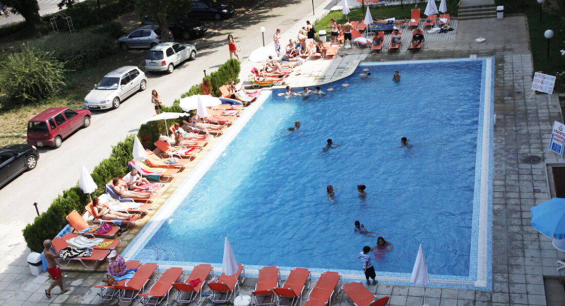 Нормальная болгарская четверка. До моря два шага. Вид на море лучше не брать, музыка орет до 5-6 утра, уснуть без допинга - не возможно. Питание (завтрак) - типичный болгарский (еды выбор не большой, но есть можно). Есть вариант с "все включено", но смысла он не имеет, т.к. территории своей нет, анимации то же, в баре только местное "пойло". Номера большие, фен, холодильник есть. Персонал отеля вполне приветливый, но из-за молодости своей по русски говорит с большим трудом, лучше общаться на английском или немецком. Из неприятного - обнаружилось что бассейн и лежаки возле него отелю не принадлежат, у них отдельный хозяин. За лежак хотят 7 левов (3,5 евро), менежерша бассейна - злобное существо пытающаяся вымогать деньги угрожая полицией, смысла в этом бассейне нет. Чуть дальше за те же деньги есть большой бассейн с горками, ну и море конечно.