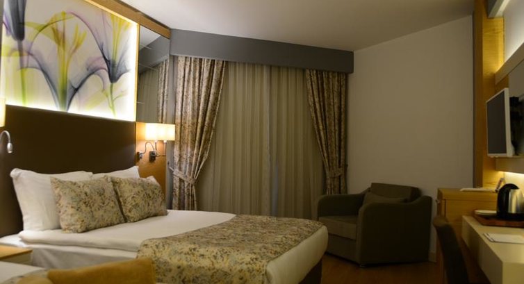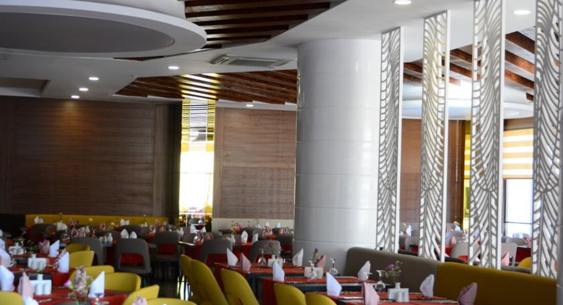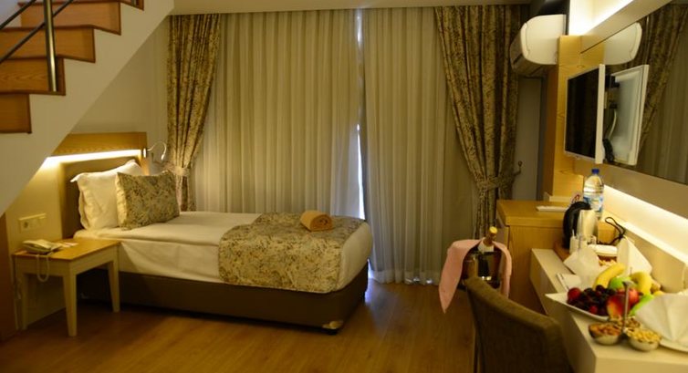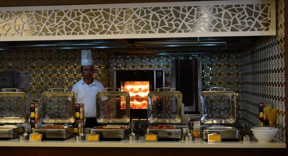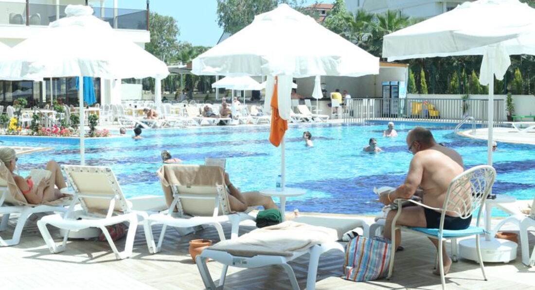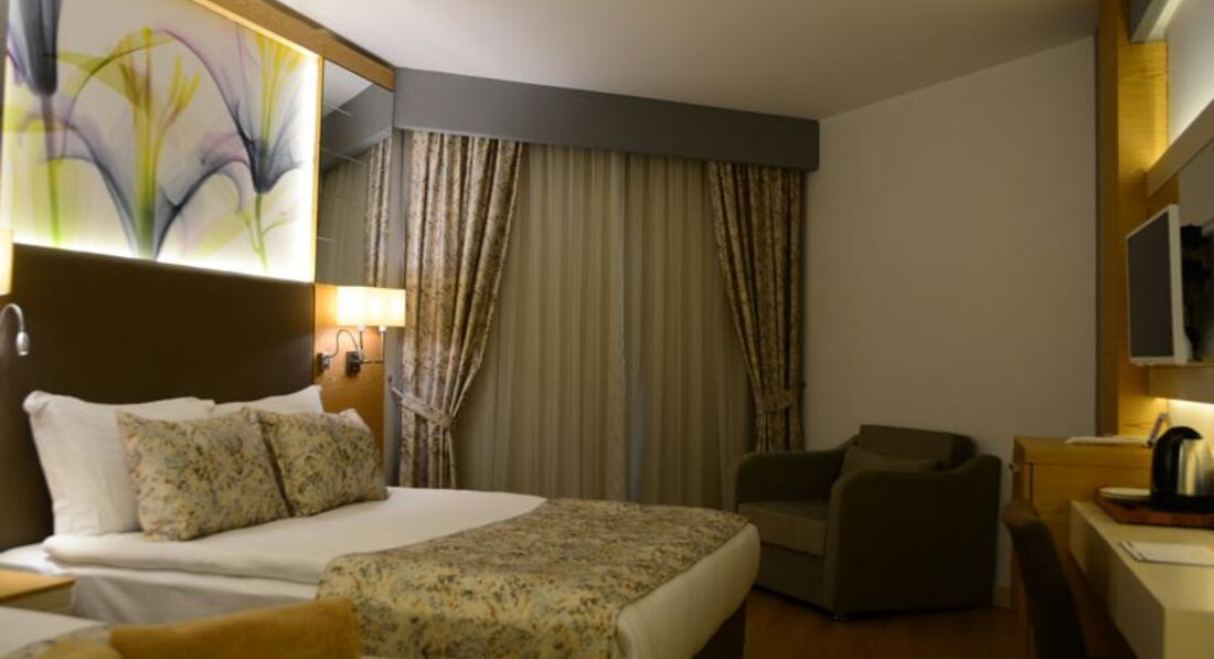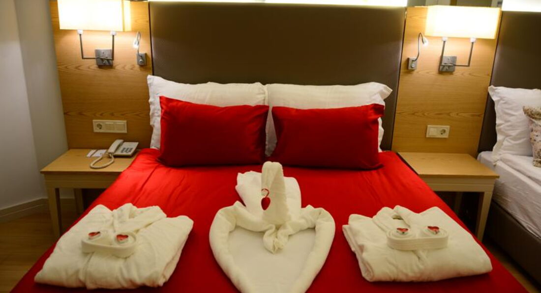 Отдыхали в этом отеле две недели. Приехали в отель вечером, сказали что мест нет, ночевали в другом отеле. Заселили, основательно подпортив настроение, только после 10 часов, на следующий день. Номер очень странный, детская кровать стоит в коридоре, напротив туалета, там же дверь в какое то техническое помещение (думаю что там вентиляционная шахта, так как там что то периодически гудело). В номере все работало исправно, но для душа только жидкое мыло в дозаторе. В отеле отдыхают в основном немцы ( пенсионеры), немного украинцев турок и русских. Русских там явно игнорируют. В ресторане название блюда только на турецком, английском и конечно немецком. Персонал в отеле на русском не говорит. Детского стола нет, все очень острое, ребенок две недели питался только картошкой фри и макаронами. Мороженного нет. Сок только порошковый. Молочных коктелей нет.Пахлава только в пятницу.Фруктов мало. Детская комната без окон, в полуподвальном помещении, не проветривается, зато хорошо работает кондиционер и наш ребенок заболел. Детям скучно, да их там и немного. Отель понравится пенсионерам для тихого, спокойного отдыха. Мы сюда не вернемся.