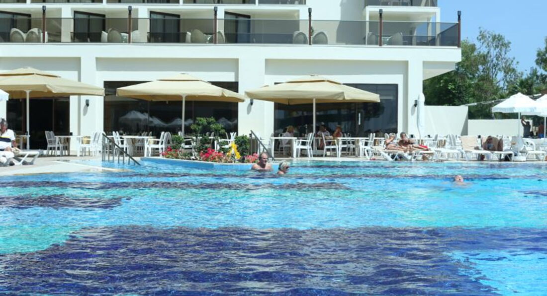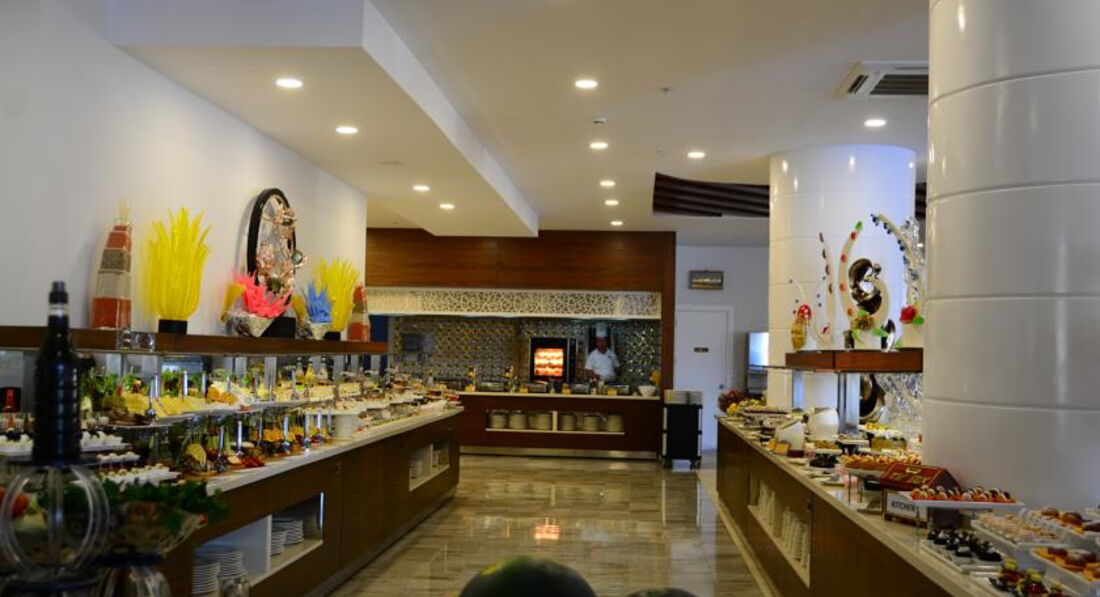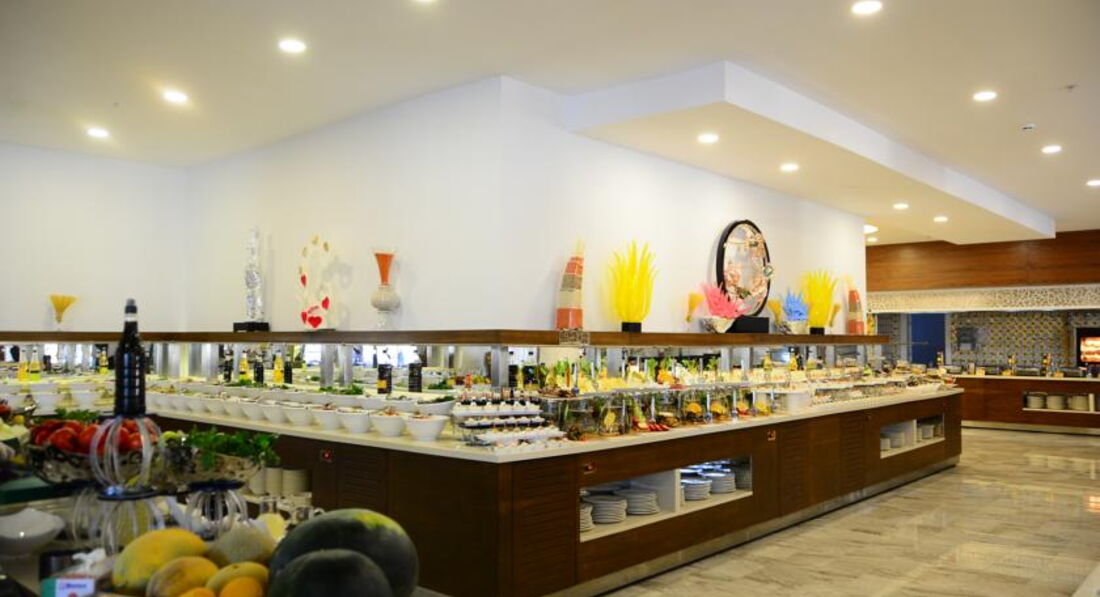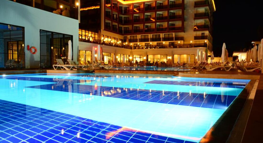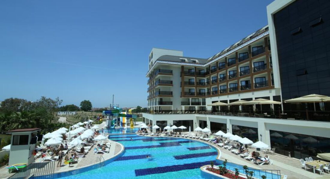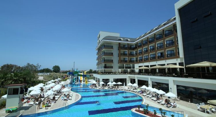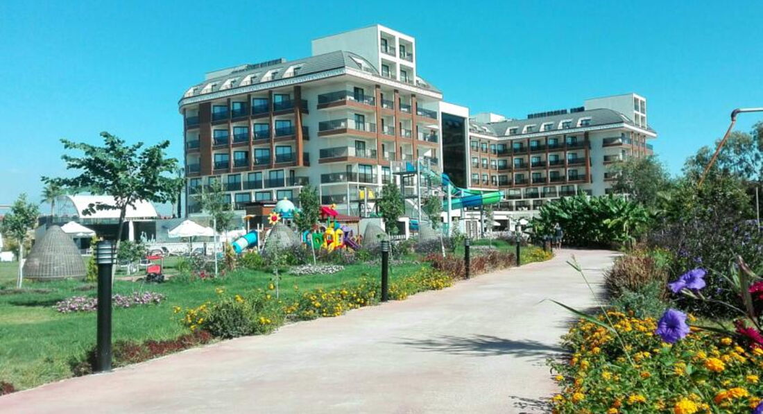 Мы сначала купили путевку, а потом уже я прочитала отзывы и была разочарованна. Но по приезду в отель поняла что все не так и плохо а даже очень очень хорошо. Начну сначала по приезду на рецепшине нас встретили (да действительно плохо говорят по русски, но все же говорят) чемоданы нам донесли чаевых не давала поскольку мелочи не было, но его это ни сколько не растроило, нам показали номер и спросили устраивает ли он нас вид был на какую, то пустынную плантацию меня это устроило поскольку вид на море у этого отеля также выходит на бассейн, а шум доносящийся с него я не очень люблю да и ласточки там летают и гнезда на балконах вьют))) Номер был хороший чистый убирались каждый день, полотенца меняли каждый день. Детям там можно найти чего поесь, но наши ни чего не ели просто не любители. Там готовят потрясающюю говядину тушеную у меня муж ее постоянно ел, были даже суши, так же баранина но не каждый день. Рыбу они обычно делают на гриле это около бара. Фруктов много арбузы, сливы, дыни, абрикосы, персики, нектарины. В общем кухня мне понравилась. Из России там было очень мало народу, конечно в основном немцы, турки и украинцы. Особую благодарность хочу сказать аниматорам очень крутые ребята особенно Ерджан, мои дети в восторге от них. До моря где-то примерно 500 метров, но в качестве прогулки очень даже хорошо, постоянно ездит автобус бесплатный минута и на море. А также в баре на пляже делают суперские лаваши с начинкой это где-то пол 11. Очень много всего чем мы не воспользовались ночной дискотекой, хамамом, тренажерным залом, спа потому-что маленькие дети. Но могу сказать с уверенностью что еще раз бы туда вернулась с превеликим удовольствием!