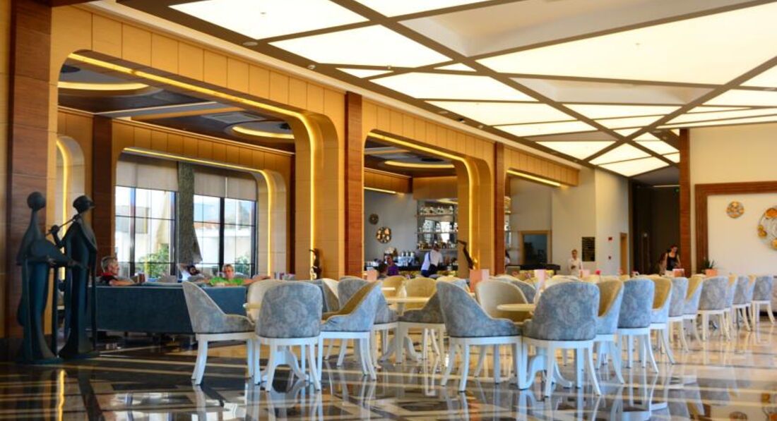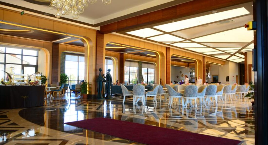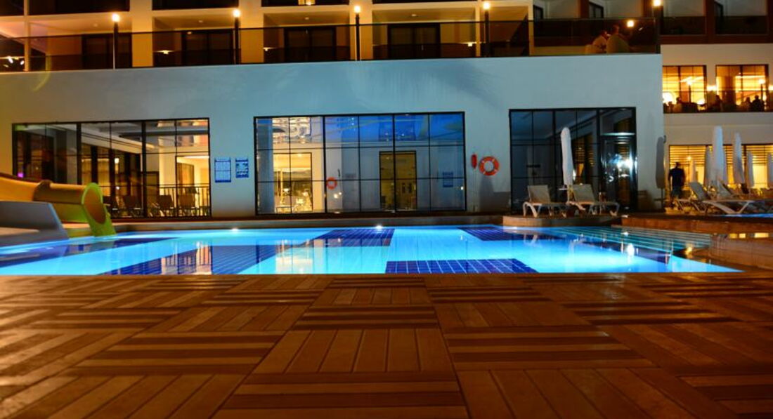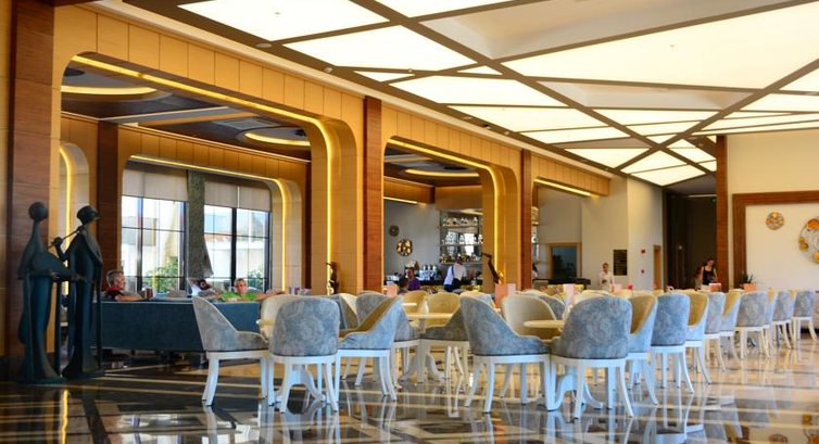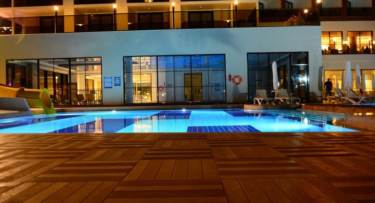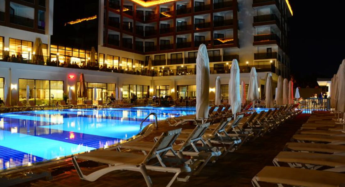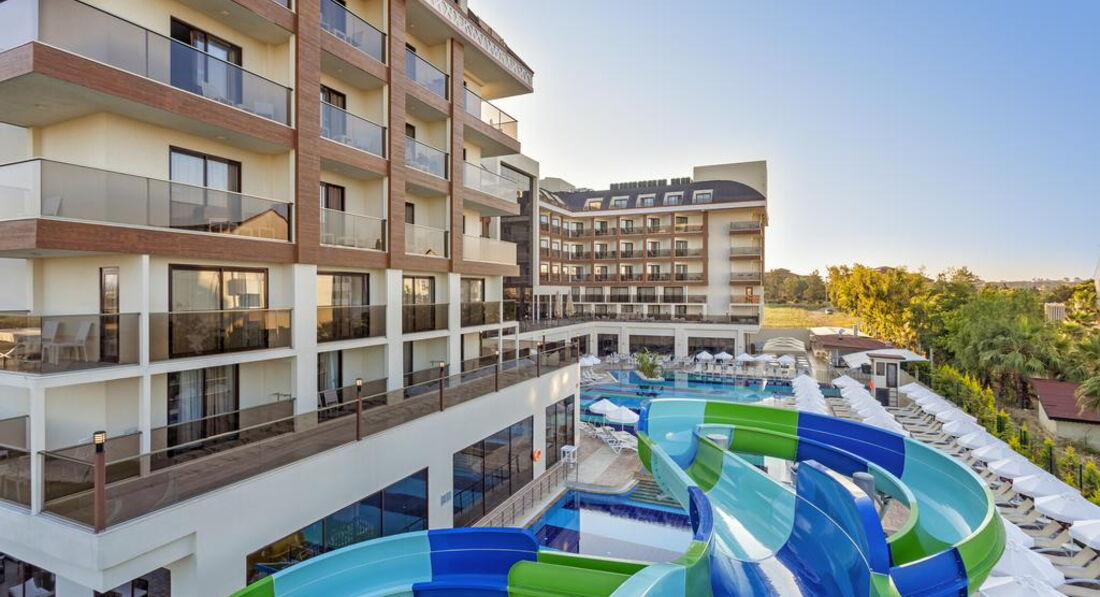 Мы сначала купили путевку, а потом уже я прочитала отзывы и была разочарованна. Но по приезду в отель поняла что все не так и плохо а даже очень очень хорошо. Начну сначала по приезду на рецепшине нас встретили (да действительно плохо говорят по русски, но все же говорят) чемоданы нам донесли чаевых не давала поскольку мелочи не было, но его это ни сколько не растроило, нам показали номер и спросили устраивает ли он нас вид был на какую, то пустынную плантацию меня это устроило поскольку вид на море у этого отеля также выходит на бассейн, а шум доносящийся с него я не очень люблю да и ласточки там летают и гнезда на балконах вьют))) Номер был хороший чистый убирались каждый день, полотенца меняли каждый день. Детям там можно найти чего поесь, но наши ни чего не ели просто не любители. Там готовят потрясающюю говядину тушеную у меня муж ее постоянно ел, были даже суши, так же баранина но не каждый день. Рыбу они обычно делают на гриле это около бара. Фруктов много арбузы, сливы, дыни, абрикосы, персики, нектарины. В общем кухня мне понравилась. Из России там было очень мало народу, конечно в основном немцы, турки и украинцы. Особую благодарность хочу сказать аниматорам очень крутые ребята особенно Ерджан, мои дети в восторге от них. До моря где-то примерно 500 метров, но в качестве прогулки очень даже хорошо, постоянно ездит автобус бесплатный минута и на море. А также в баре на пляже делают суперские лаваши с начинкой это где-то пол 11. Очень много всего чем мы не воспользовались ночной дискотекой, хамамом, тренажерным залом, спа потому-что маленькие дети. Но могу сказать с уверенностью что еще раз бы туда вернулась с превеликим удовольствием!