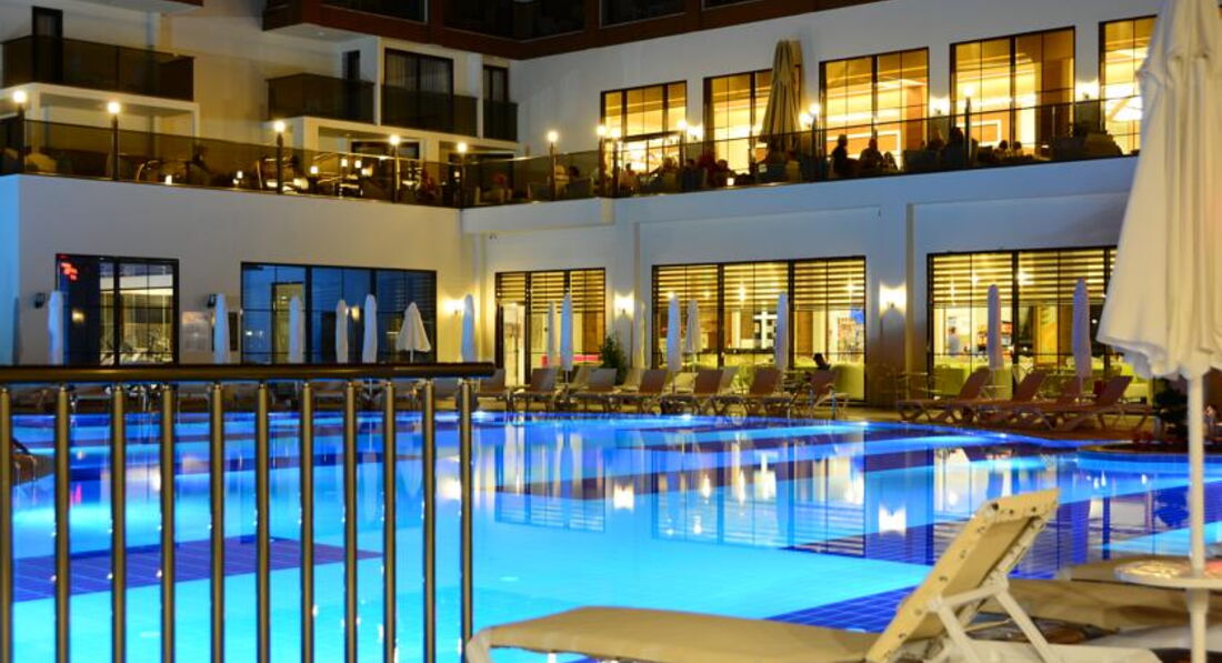 Всем приветы!Решил написать отзыв почитав последние два достаточно некорректных отзыва,как раз по горячим следам.Ехали с библиоглобус,приехали в отель в 7 утра, заселение в 14.00, но менеджер русскоговорящий зовут Айдина,ранее про неё уже писали,попросила сходить на завтрак и в 8.00 мы уже были в номере.( Кстати и она и весь персонал по всем возникающим вопросам помогали и решали достойно),Номер мы заказывали фемели,достался номер 1012 ,двухэтажный,вполне нас устроил,нас было трое взрослых и двое детей(1 и 3 года).Уборка была каждый день,полотенца меняли также каждый день,некоторые пишут про шум с дороги,мы спали с открытыми балконами и дискомфорта не было,номера новые и мебель ещё не ушатанная.Воду пополняли ежедневно или по запросу могли добавить сколько душе угодно,чайник был, чай,кофе и сахар пополнялись постоянно.Есть наши каналы РТР и Россия 24,кому интересно.Вай фай был в номере,летал и проблем не было,на пляже также работал достаточно хорошо.Пляж достоин похвалы,новые шезлонги,тенты,есть боксы для вещей но он платный по жетонам,приобретаются на ресепшн.Пляж чистый постоянно ходит парень и убирает мусор.Море чистое,для начала июня вода уже была тёплая,заход пологий,для детей самое то плескаться,нашим детишкам понравилось.Предлагался волейбол,боча на пляже у бассейнов аниматоры проводили игры различные с командами,типа кто быстрее нальёт воду в ведро полотенцем,был дартс,пинг понг.Сама территория отеля не супер большая но для отдыха вполне пойдёт,детская площадка хорошая чистая,наши дети по вечерам там играли.Некоторые пишут что везде на территории отеля кошачьи и птичьи какашки, уверяю ничего подобного мы не обнаружили,территория отеля была чистая.Также писали что на пляже куча собак которые на всех бросаются,да были две собаки но ни на кого они не бросаются.Рядом с пляжем есть променад,удобная дорожка для вечерних прогулок,если стоять к морю и пойти налево примерно метров через 700 рядом с отелем альба ресорт есть контактный зоопарк, птицы разные,рыбки,несколько животных,бесплатно,также там растут сосны и вечером пахнет очень приятно,направо если идти просто прогулка мимо отелей. Про питание, пишут что не разнообразно,на наш взгляд питание было разнообразным,рыба и вареная и гриль,(макрель,дорада,и ещё какая то),курица гриль,варёная,говядина была в основном тушеная.Гарниров всяких куча,сладостей также куча,салатов много,фрукты (арбуз,бананы,яблоки,клубника).Ужины тематические каждый день.Не то что голодным не останетесь,считаю все достойно по питанию.Магазины направо при выходе от отеля,все что нужно купите. Если идти к пляжу,на повороте сворачиваем направо,и через 200 метров большой базар,в основном одежда.На пляж ходит отельная маршрутка каждые 10-15 минут,для тех кто лениться,до пляжа идти как уже писали 5-7 минут.Забыл написать про мороженое,каждый день был,нашим детям очень понравилось.Вечером приезжали разные группы с номерами,нам понравилось.Считаю отель соответсвует твёрдой четверке,персонал старается помочь.