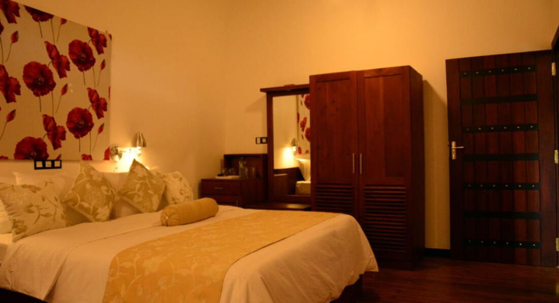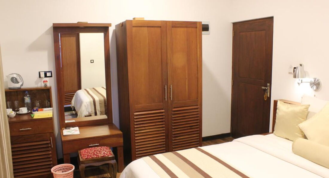 Отель небольшой, но уютный. Стандартный номер, балкон, добротная мебель в юго-восточном стиле, . Всегда улыбчивый и отзывчивый персонал. В номере современная сантехника, кондиционер, холодильник. Приятно удивили бесплатные и беззалоговые услуги в номере: сейф, чайник, чай и кофе в пакетиках, 2 бутылочки воды ежедневно, фумигатор от комаров, переходник для розеток, фен, при необходимости приносили утюг и гладильную доску. Ежедневная уборка. Жили на 4-м этаже, самом верхнем. Комаров не видели, по моему один пролетел, когда сидели вечером на балконе. Окно выходило на море, хотя из-за высоких пальм видно было чуть-чуть, но зато на деревьях жили разные животные: обезьяны, летучие собаки, белки, разные птицы, которые нас не беспокоили, а наблюдать было интересно. Ресторан небольшой, но спросом пользовался, приходили на завтрак и обед люди с улицы, в основном европейцы. Завтрак - шведский стол в европейском стиле с добавлением ланкийских блюд и фруктов, омлет или глазунью жарят при тебе, соль и специи по желанию, все свежее. Вечером перед отелем шеф-повар готовил какой-нибудь местный фаст-фуд на выносной плите, любой желающий мог купить. До пляжа 200 метров максимум. Море достаточно спокойное, от волн защищает коралловый риф, на который местные жители на лодках отвозят желающих понырять с маской. От отеля можно доехать на тук-туке за 15 минут и 400-500 рупий до города Галле, а из Галле на автобусе-экспрессе за 1,5 часа и 700 рупий до Коломбо, только в час пик на автобус-экспресс могут быть огромные очереди. В общем нам все понравилось.