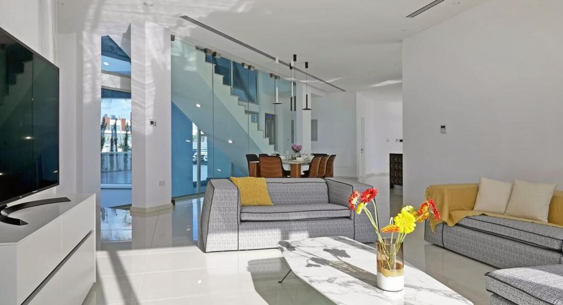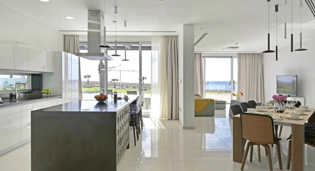 Вілла Glory Beachfront Elite розташована в місті Айя-Напа, за 2,7 км від монастиря Айя-Напа і за 3,5 км від казино Cysta - Ayia Napa. До послуг гостей безкоштовний Wi-Fi, кондиціонер, відкритий басейн та садочок. До послуг гостей балкон. Будинок для відпустки має Blu-Ray плеєр, кухню з посудомийною машиною, холодильником і духовкою, вітальнею з м'яким куточком і обідньою зоною, 5 спальнями і 2 ванними кімнатами з гідромасажною ванною і біде. До послуг гостей телевізор з плоским екраном та супутниковими каналами, а також DVD-програвач. Вранці сервірують континентальний сніданок. Вілла Glory Beachfront Elite виходить на терасу. Гості можуть взяти велосипед або автомобіль напрокат. Аквапарк Waterworld Ayia Napa знаходиться в 9 км від будинку для відпустки Glory Beachfront Elite Villa, а музей Таласса - в 2,7 км.