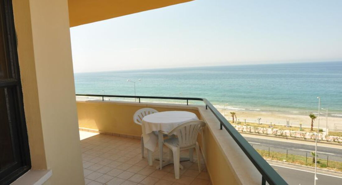 Пишу для тех, кто собрался в это отель. Рекомендую для тех кому надо к морю и кто не может выбрать более дорогой. Отель слабо тянет на 3* с +. Людям с ограниченными возможностями надо учесть, спуск с дороги к отелю очень крутой - 35 ступенек, Расположение отеля удачное, море через дорогу, но рядом через забор идет стройка 2-х зданий. По прибытии в отель готовьтесь ходить за едой и питьевой водой. Магазины продуктовые (мигрос, шок) рядом, рынок по субботам в пределах километра не более, по вторникам подальше. Разместили за 5 минут в 10 утра. Номер большой, 2 комнаты (5 спальных мест) два балкона, сантехника работает. Телевизор -6 российских каналов. Ресторан (столовочка на стройплощадке) стройка через забор в 10 метрах, столов обеденных мало, шведского стола не было, всем выносили комплексные завтраки, обеды, ужины. Завтрак 2 яйца (вареные или яичница), 4 кусочка колбасы по 5 грамм, 4 маслины, 3 оливы, 1 кусок мягкого сыра- 10 грамм, 3 кусочка желтого сыра по 3 грамма, хлеб по 4 куска. Обед-салат капуста,помидор,огурец (ежедневно), суп пол-тарелки, гарнир сложный с соевыми котлетками( крупа с лапшой и фасолью мог быть картофель) все это в ограниченном виде и не все хочется съесть. Ужин- обеденный салат и сложный гарнир с нагетсами. Один раз за неделю подали кусок птицы. Тарелки с едой выносит видимо официант, а так же дядечка в грязной куртке, руками не очень чистыми и пальчик держит в салате. Фруктов нет( через день по яблоку), сладостей нет. Мест в столовке очень мало, на еде экономят. Питьевой воды в бутылках нет, когда спросил предложили сходить в магазин. Каждый день ходил покупать хлеб (столько хлеба я еще не ел),для бутербродов, благо привез с собой колбасу, паштет, печенье, кофе, чай- после столовой догоняли в номере. В бар в этом отеле не заходил, но было видно, за стойкой часто никого нет. На рынке покупал фрукты и овощи - дешево. Если хорошо подготовиться то минусы легко превратить в плюсы.